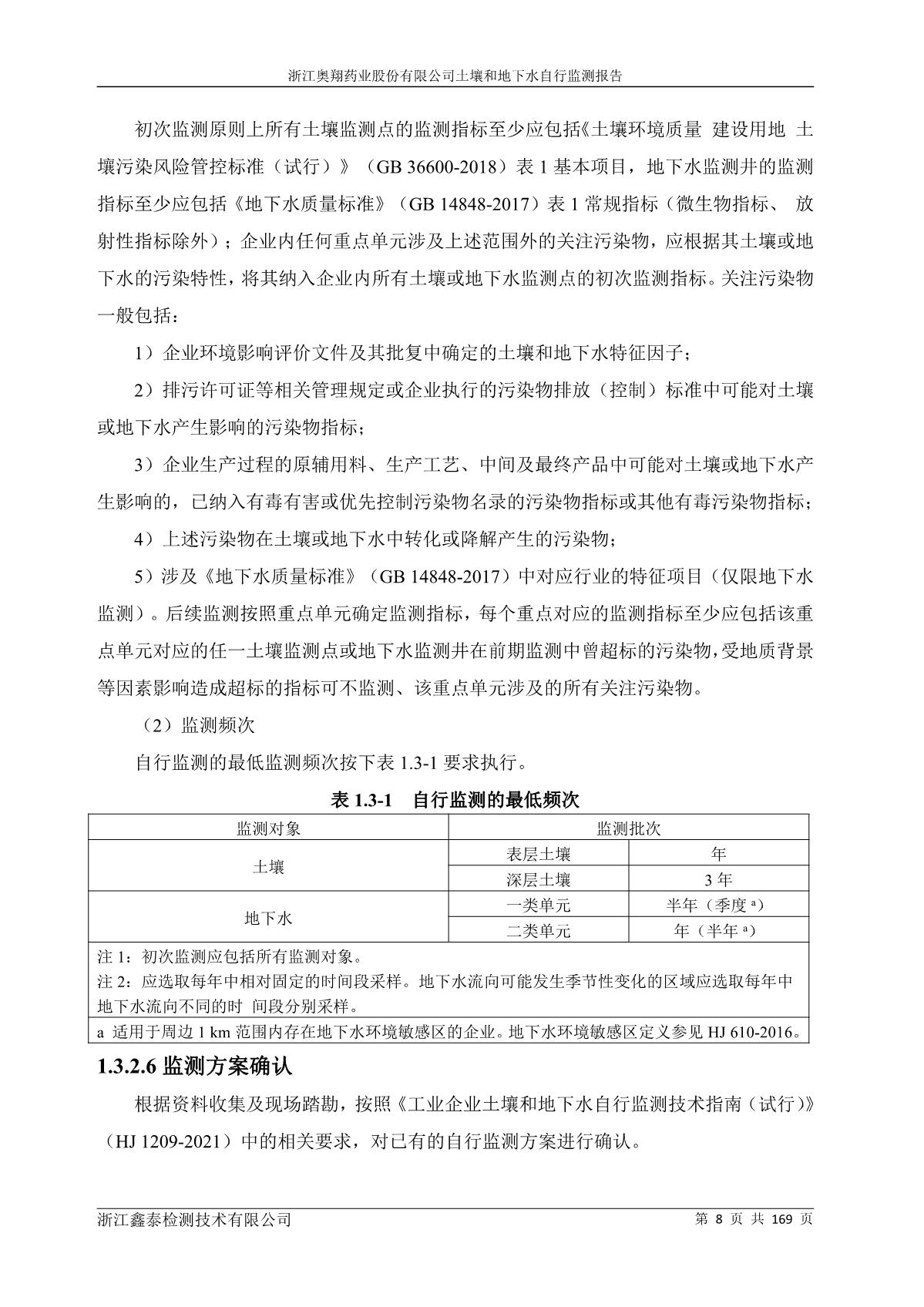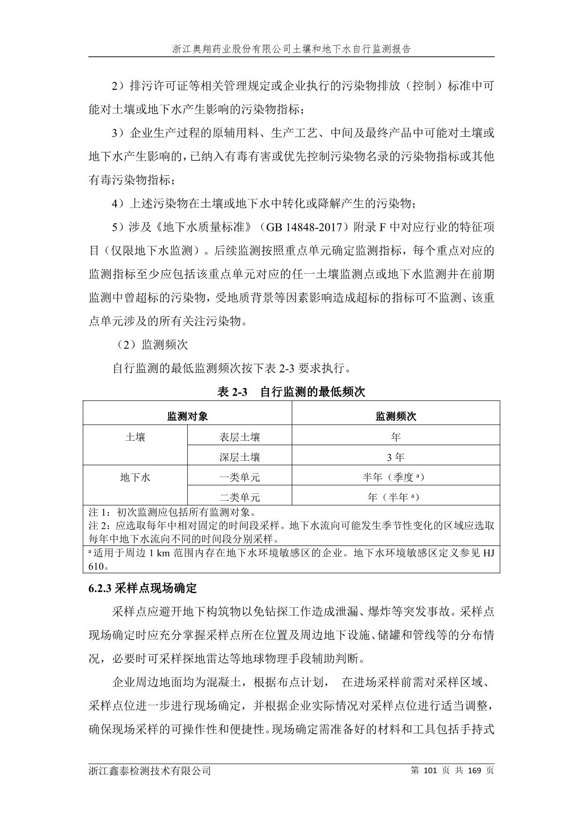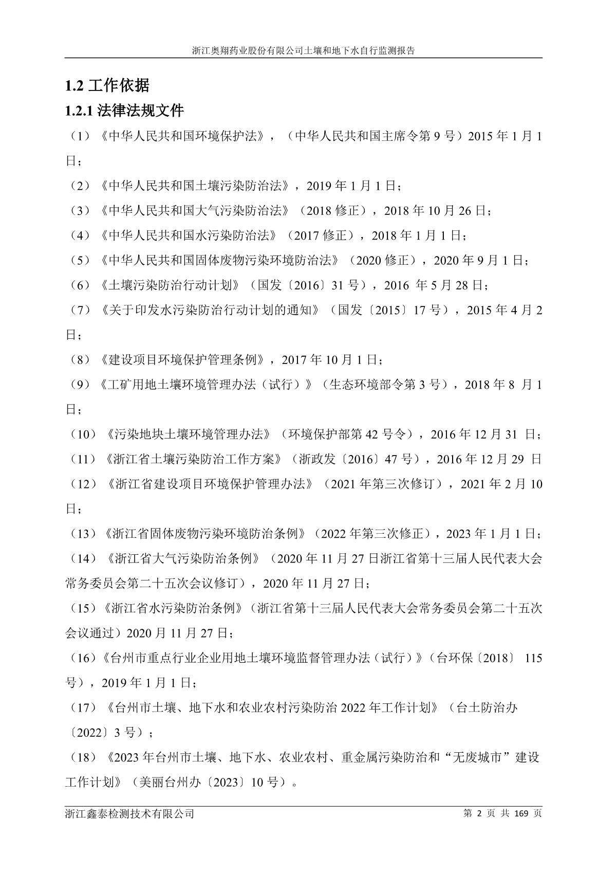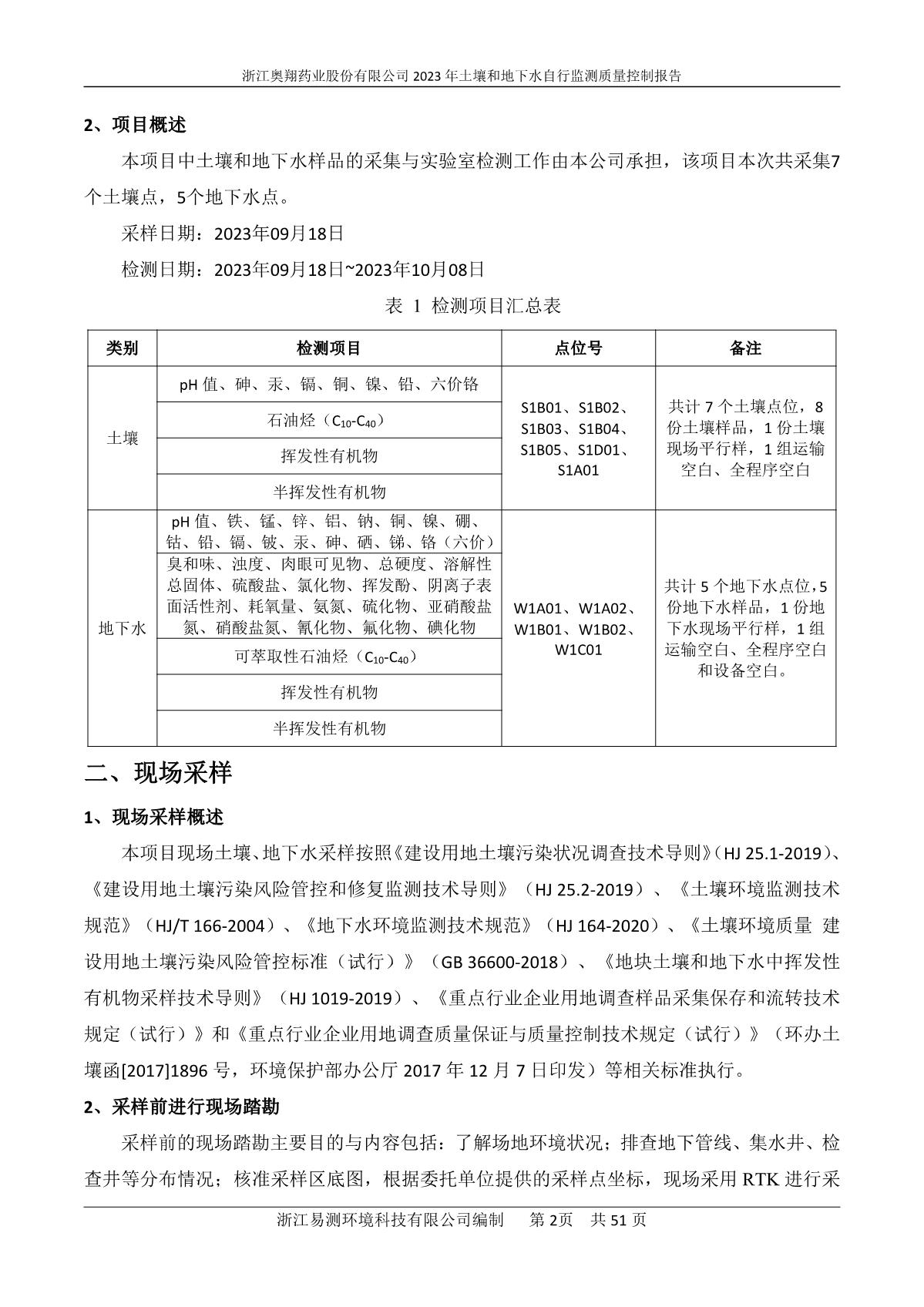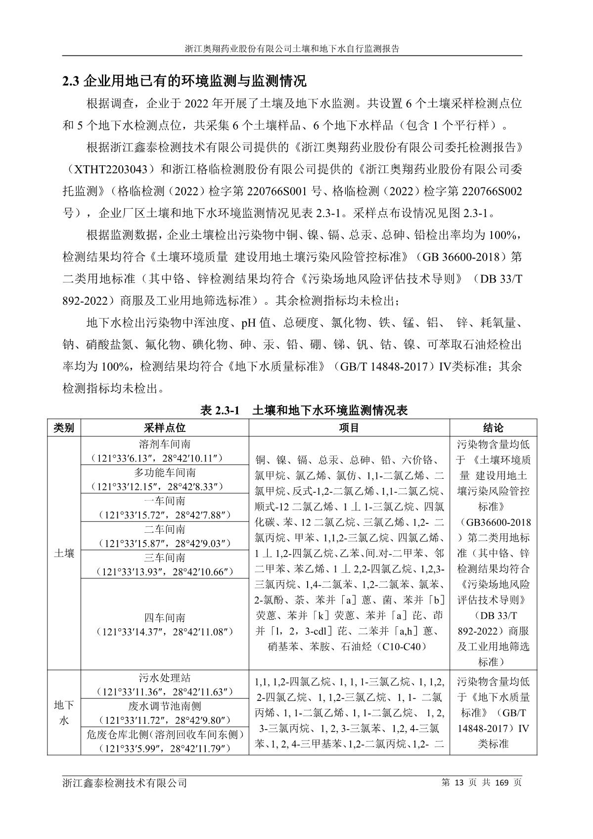 浙江奥翔药业股份有限公司土壤和地下水自行监测报告2023