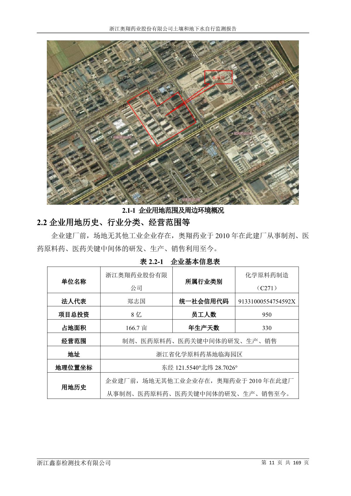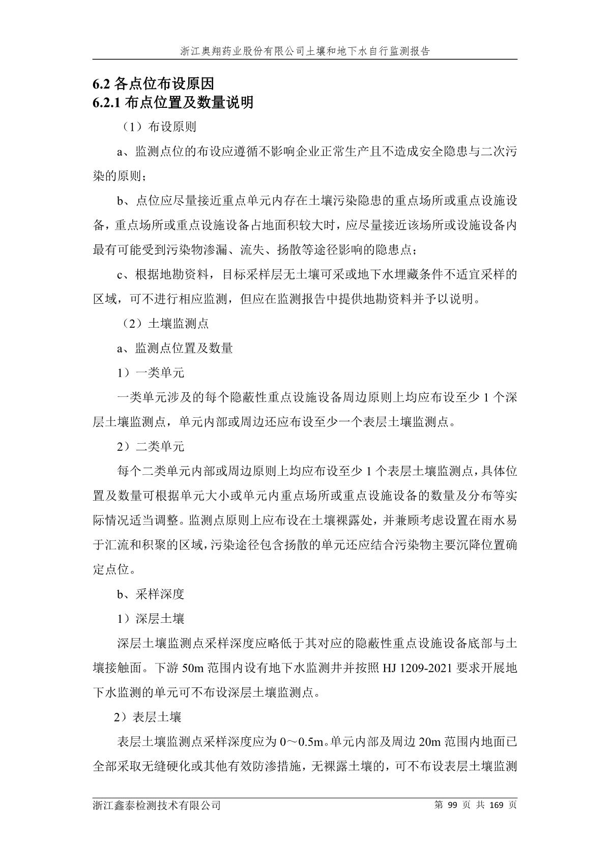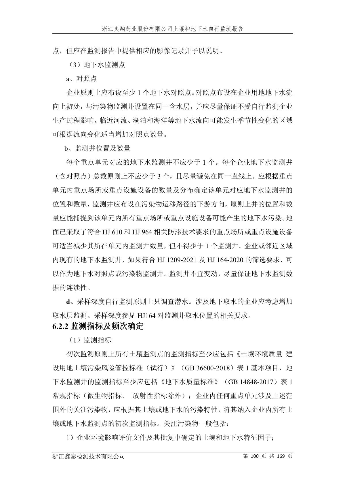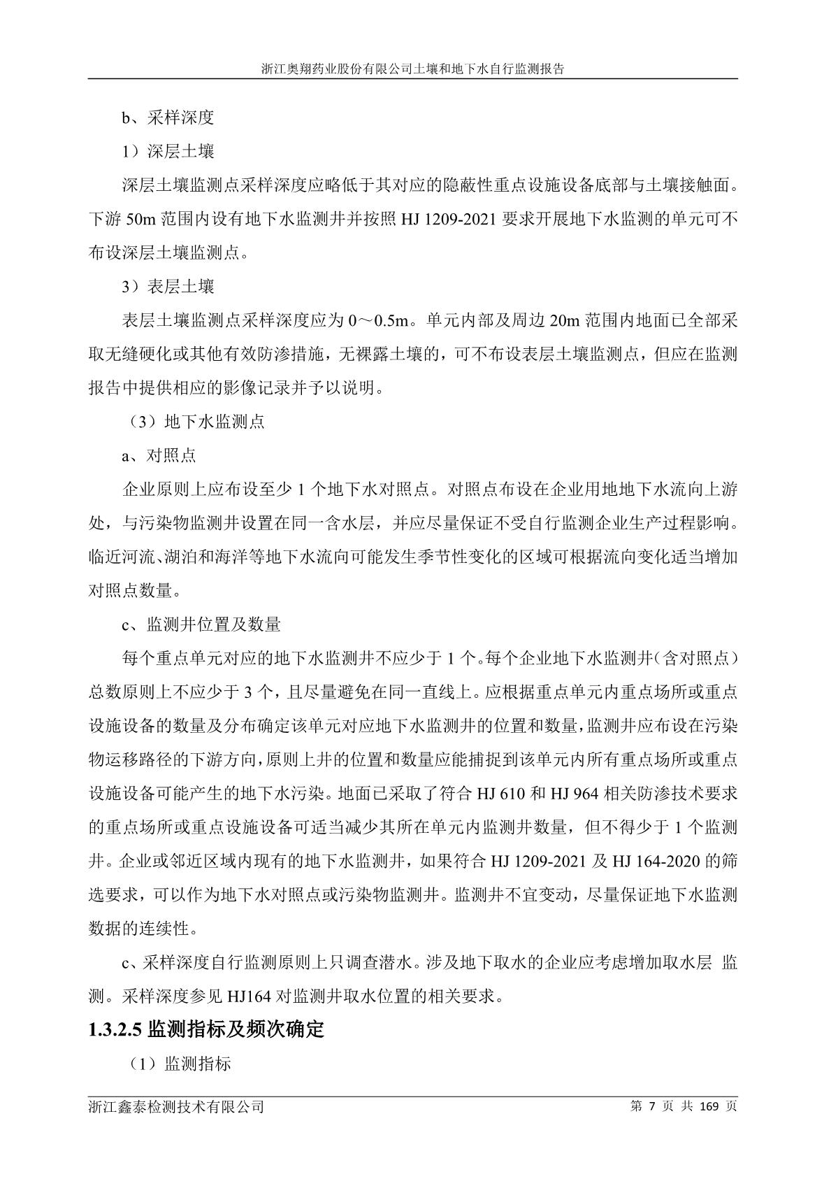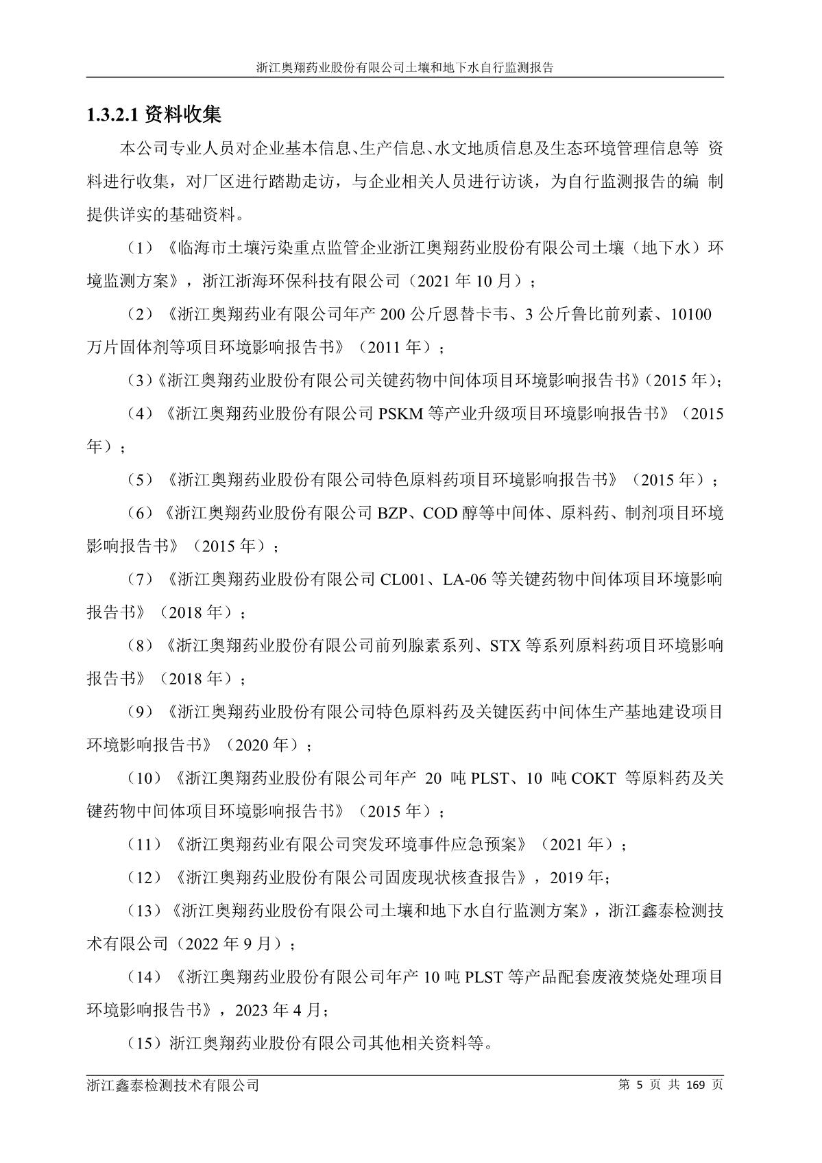 浙江奥翔药业股份有限公司土壤和地下水自行监测报告2023