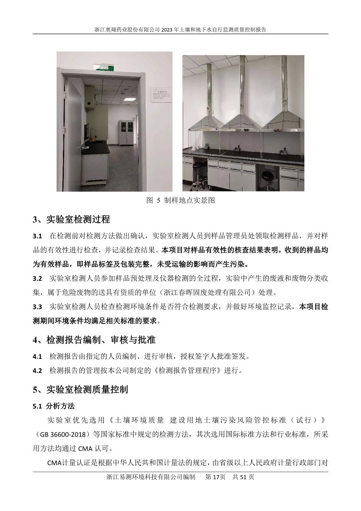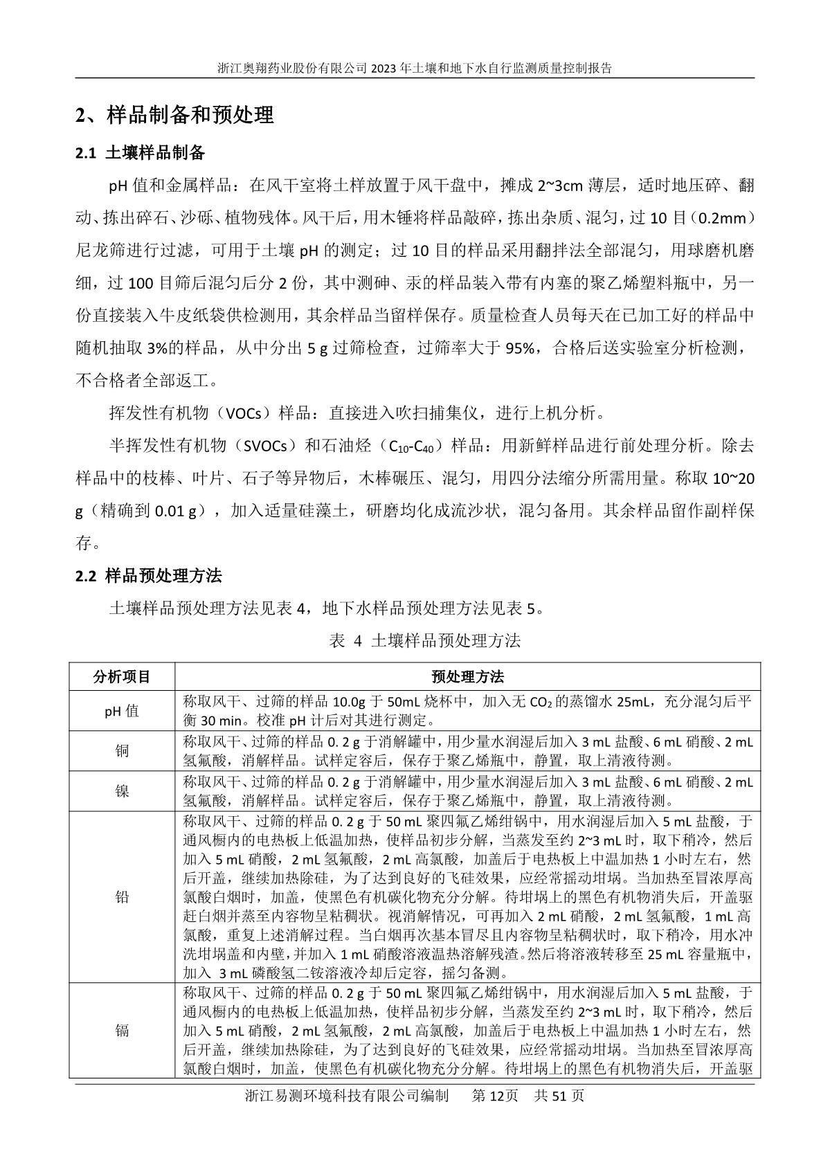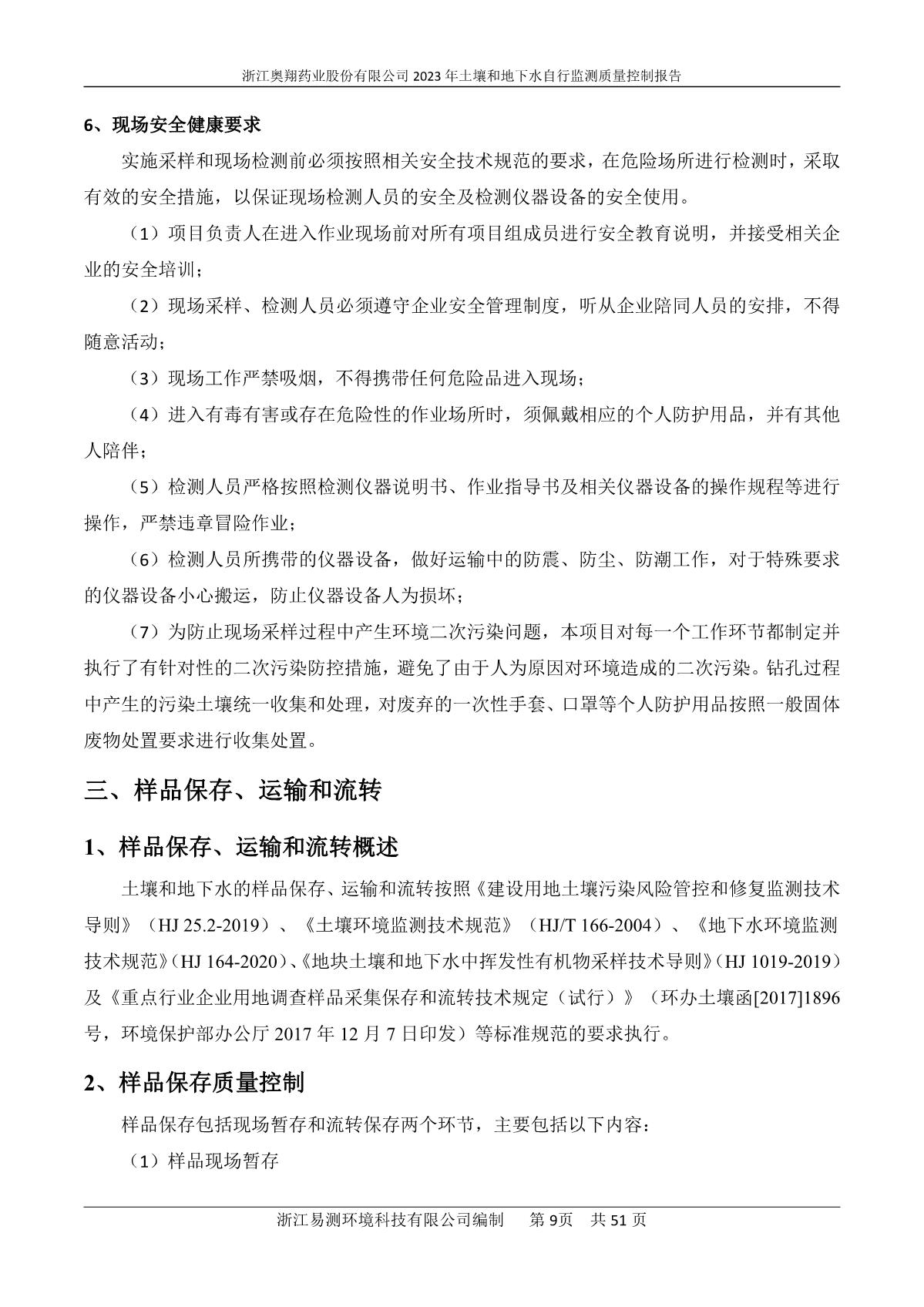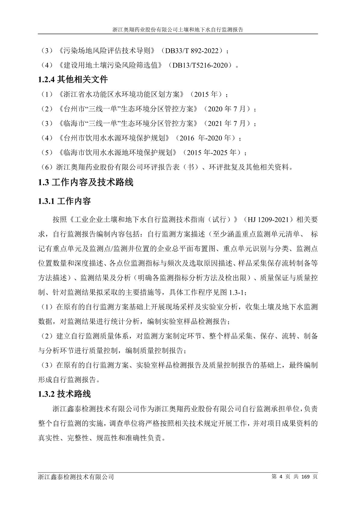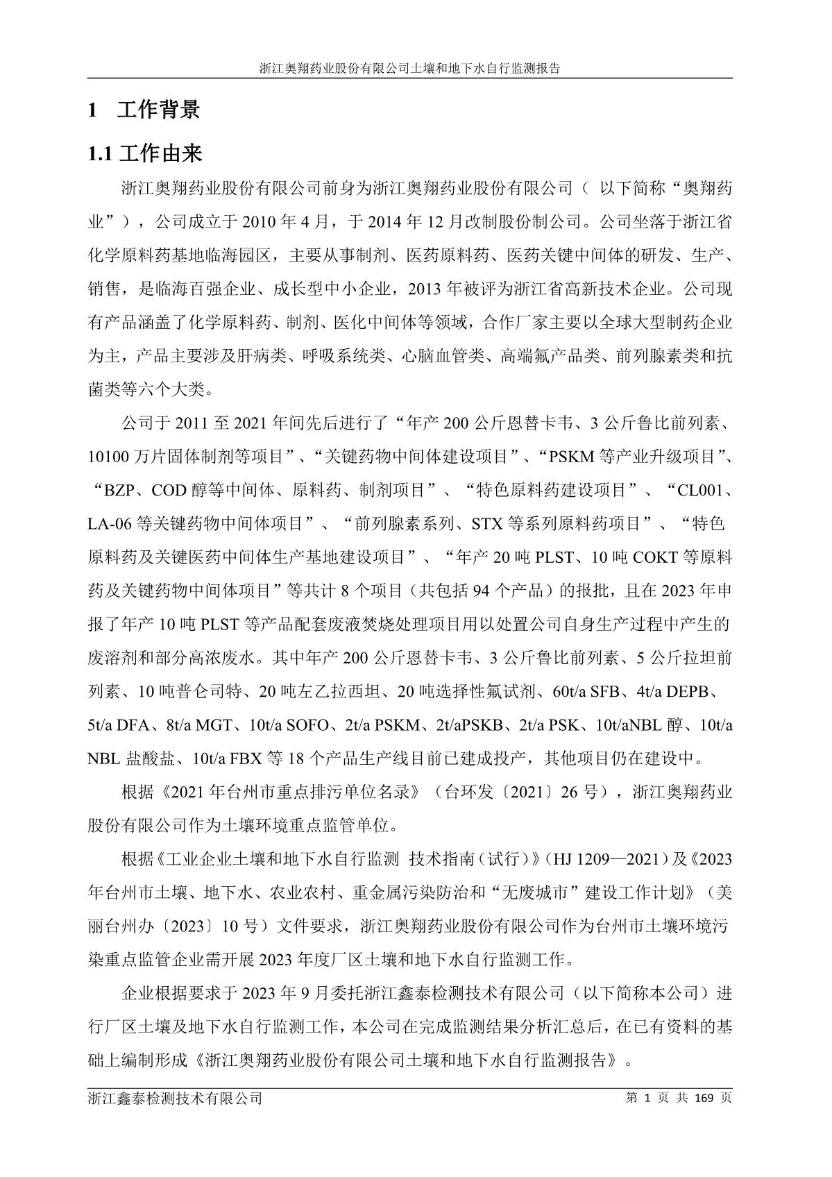 浙江奥翔药业股份有限公司土壤和地下水自行监测报告2023