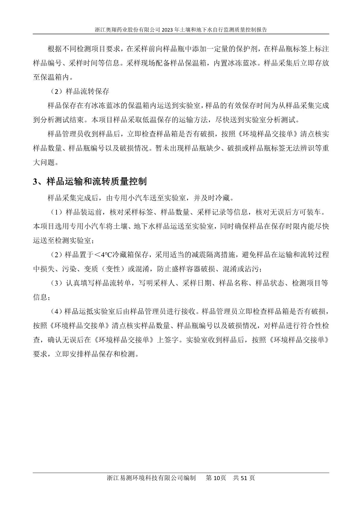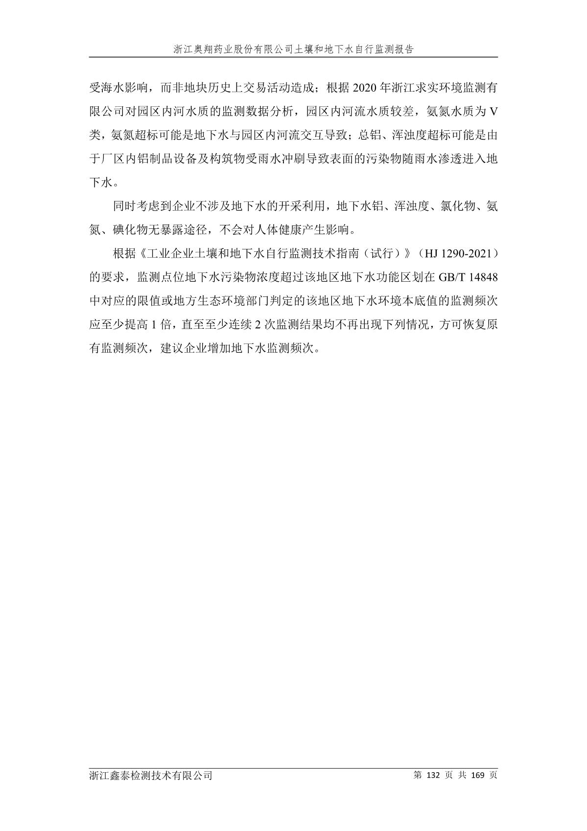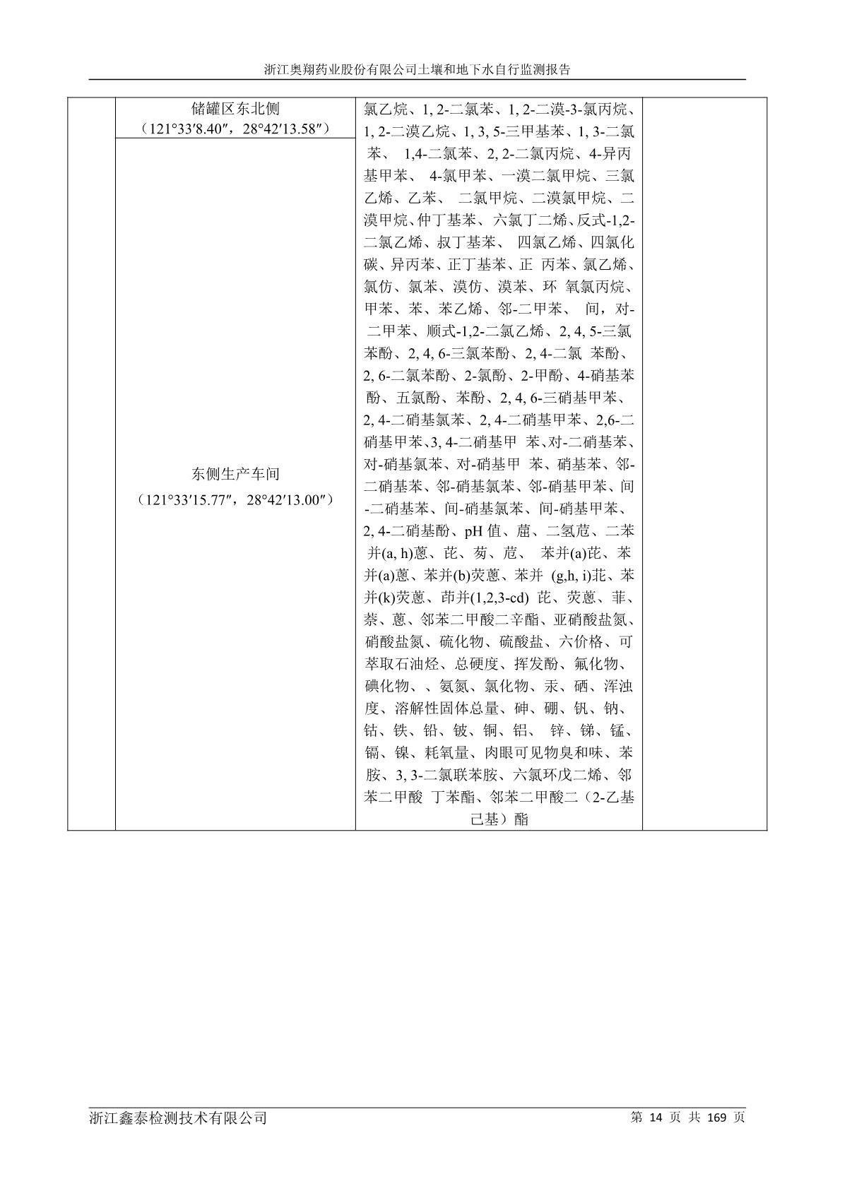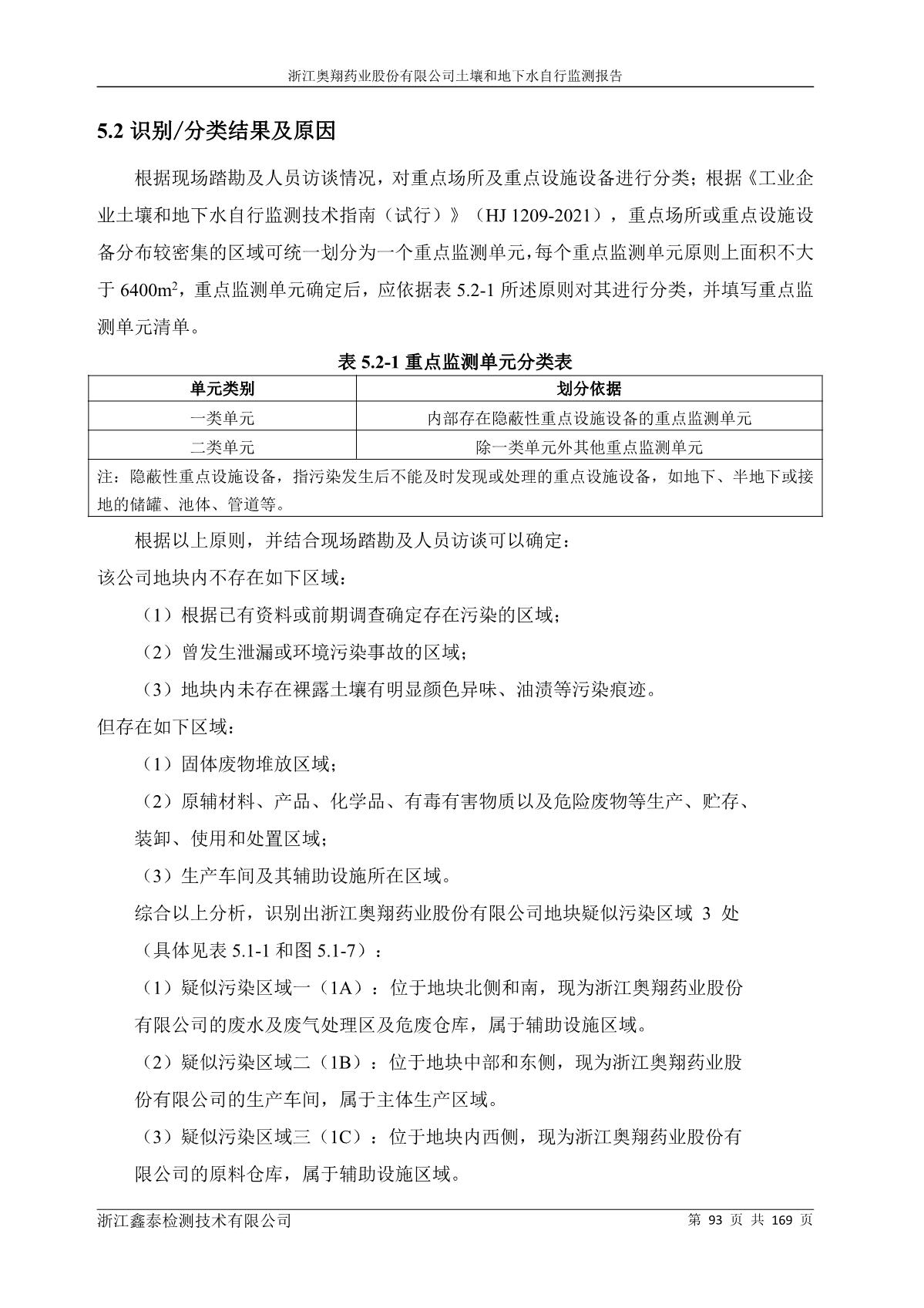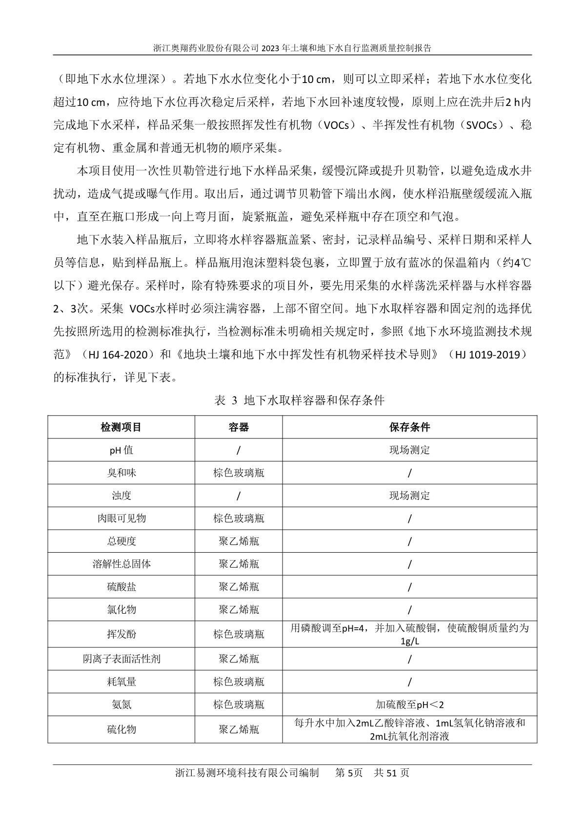 浙江奥翔药业股份有限公司土壤和地下水自行监测报告2023