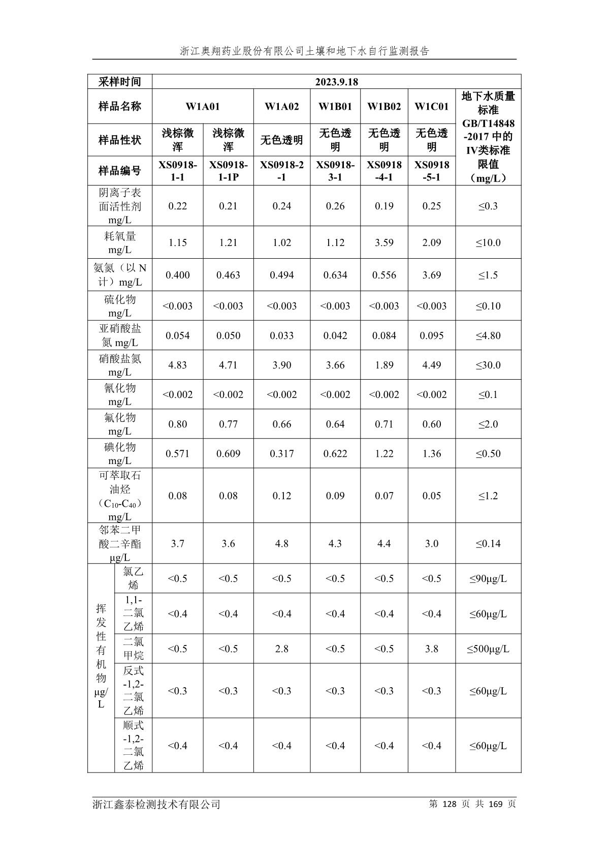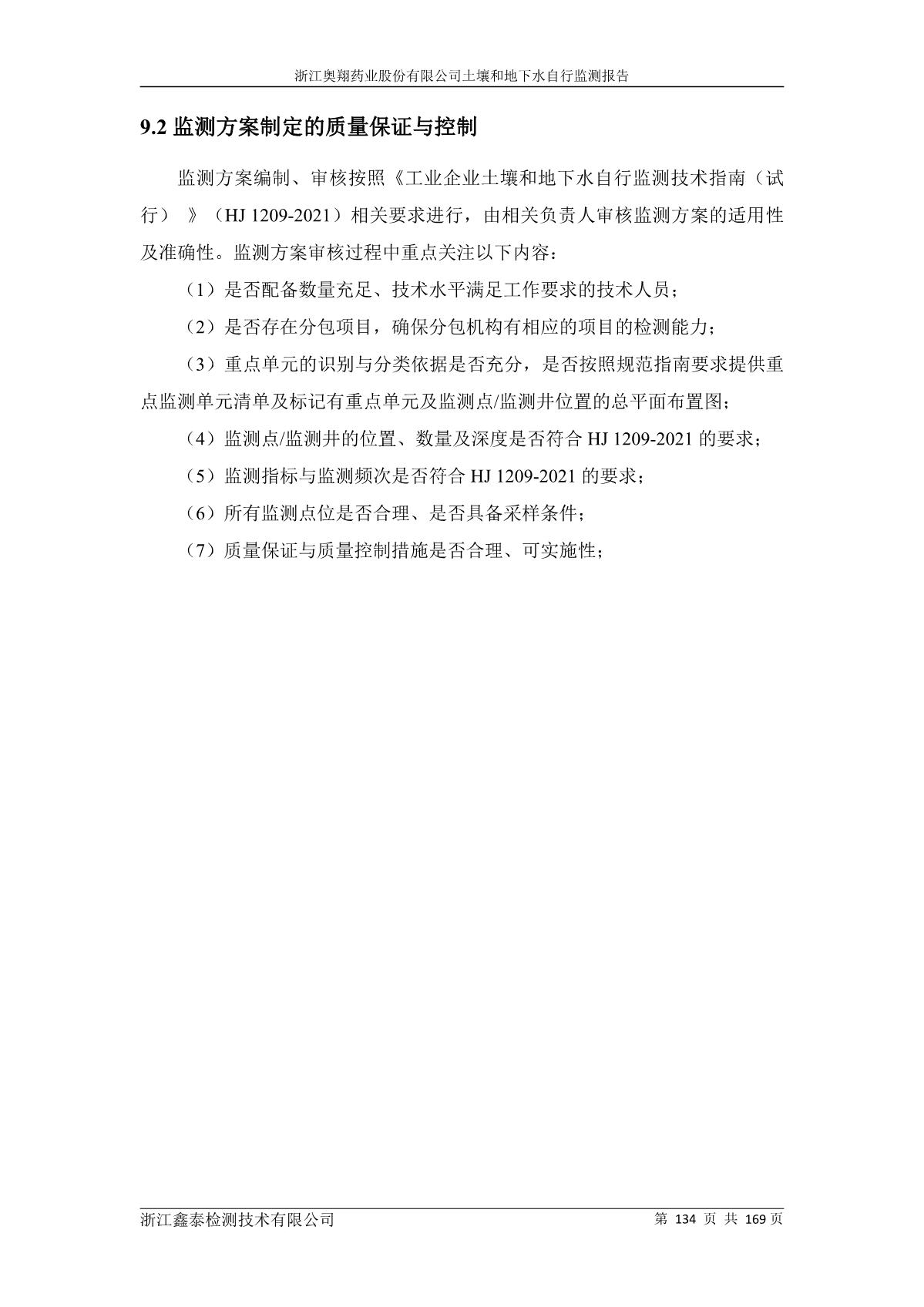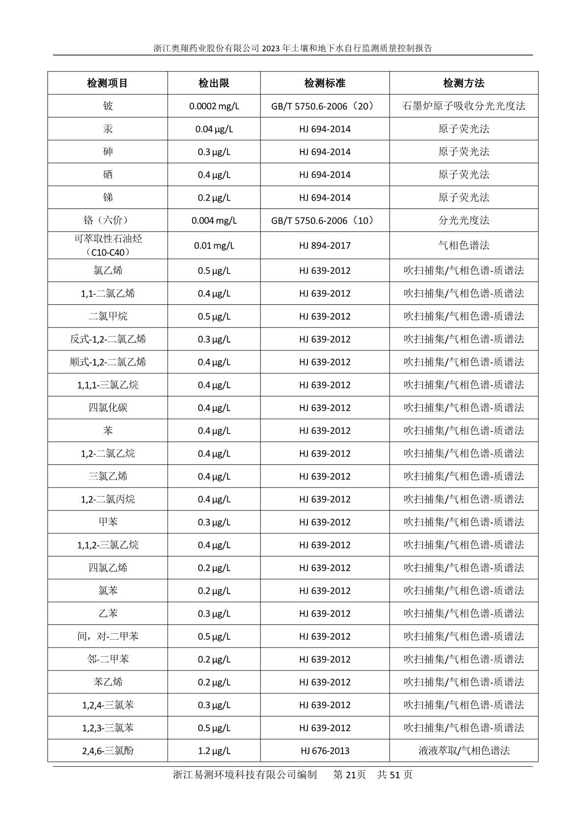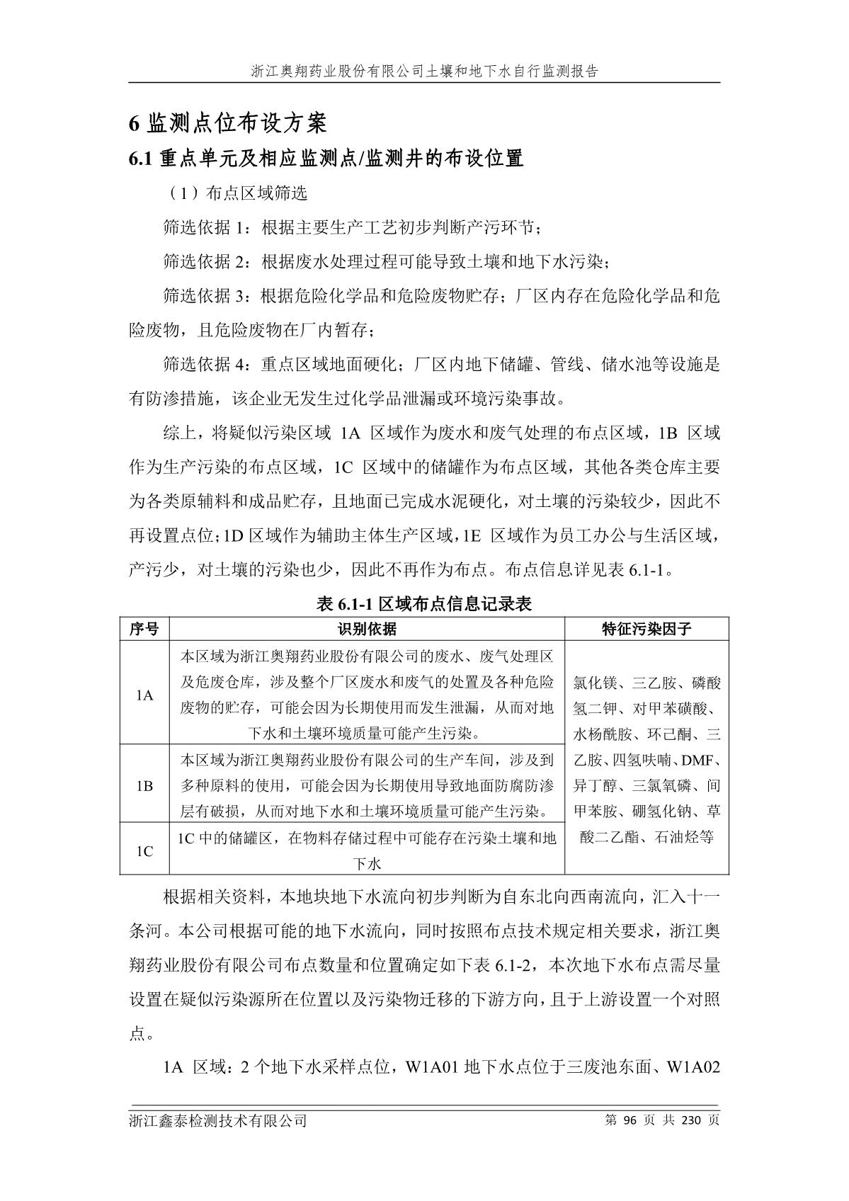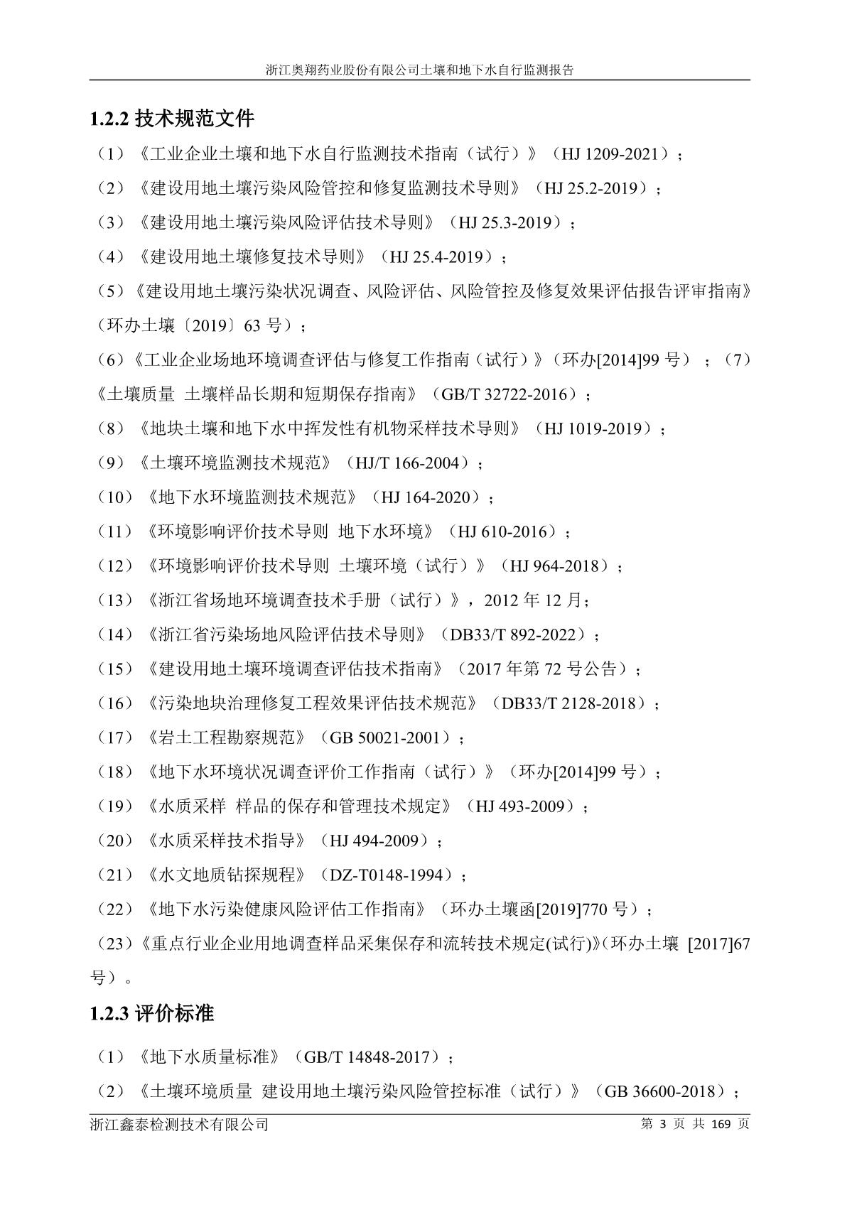 浙江奥翔药业股份有限公司土壤和地下水自行监测报告2023