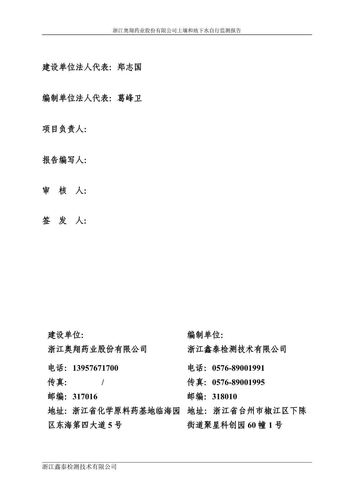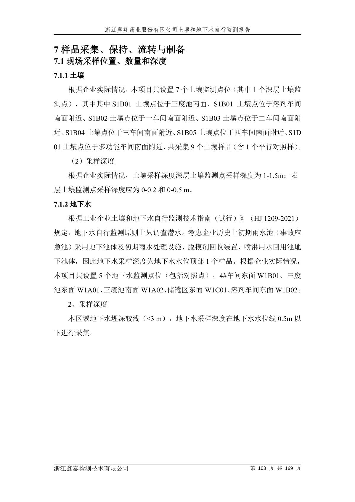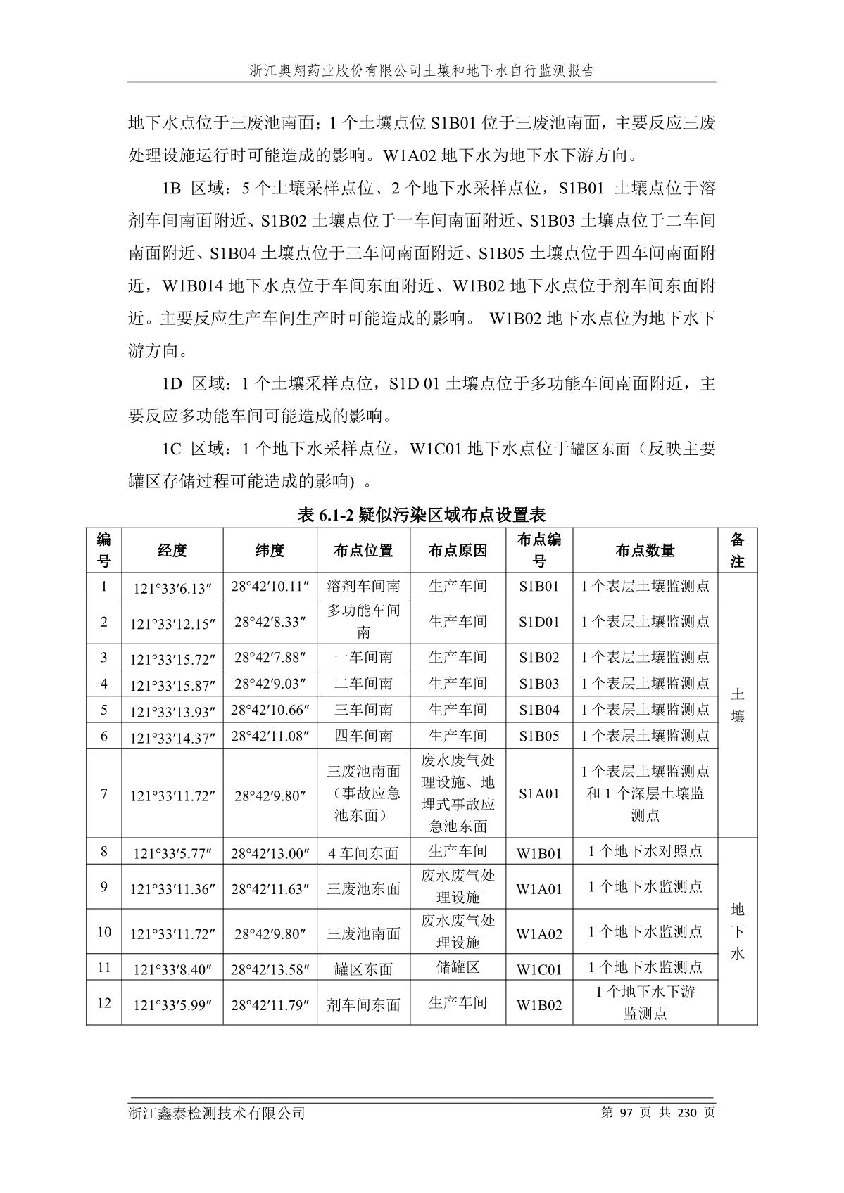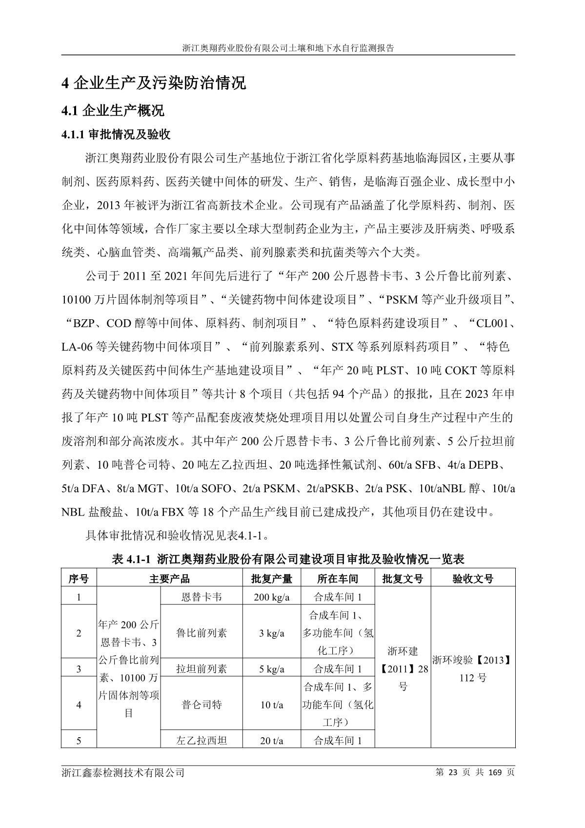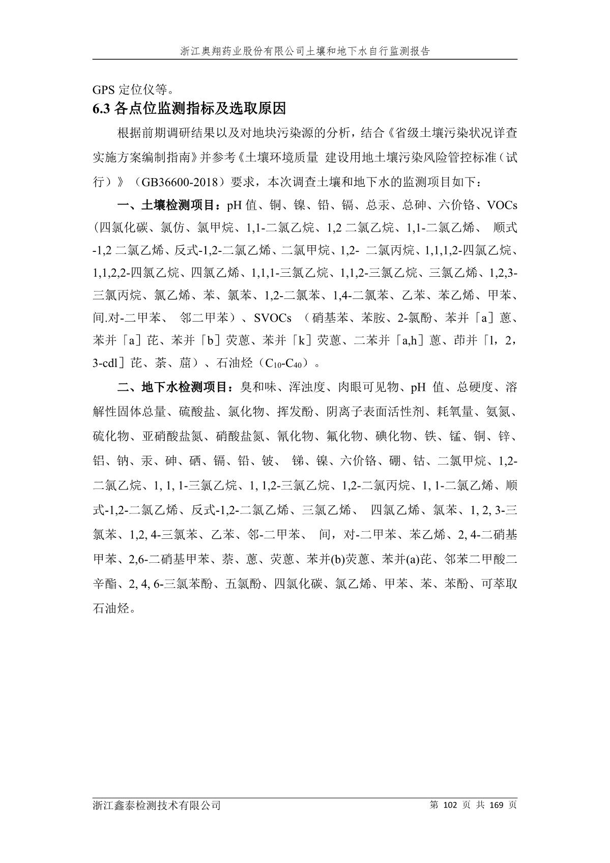浙江奥翔药业股份有限公司土壤和地下水自行监测报告2023