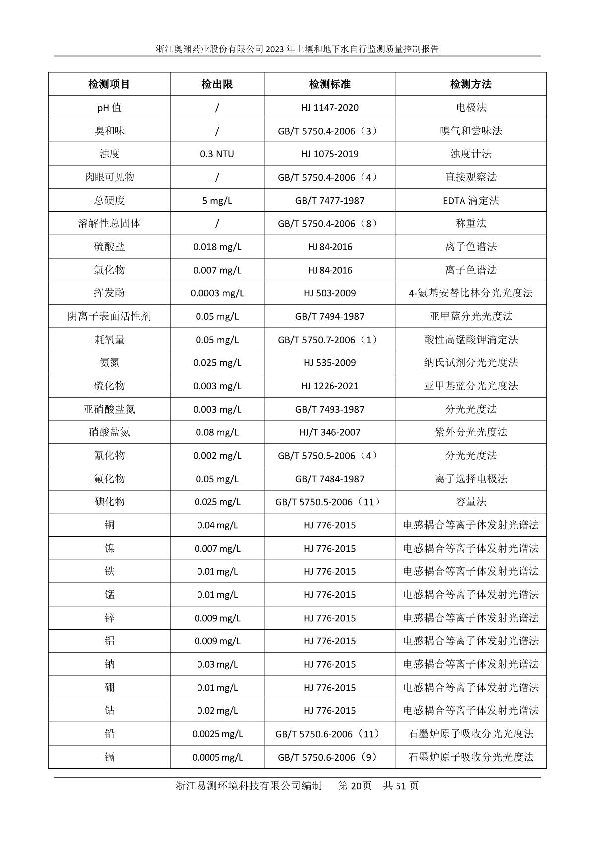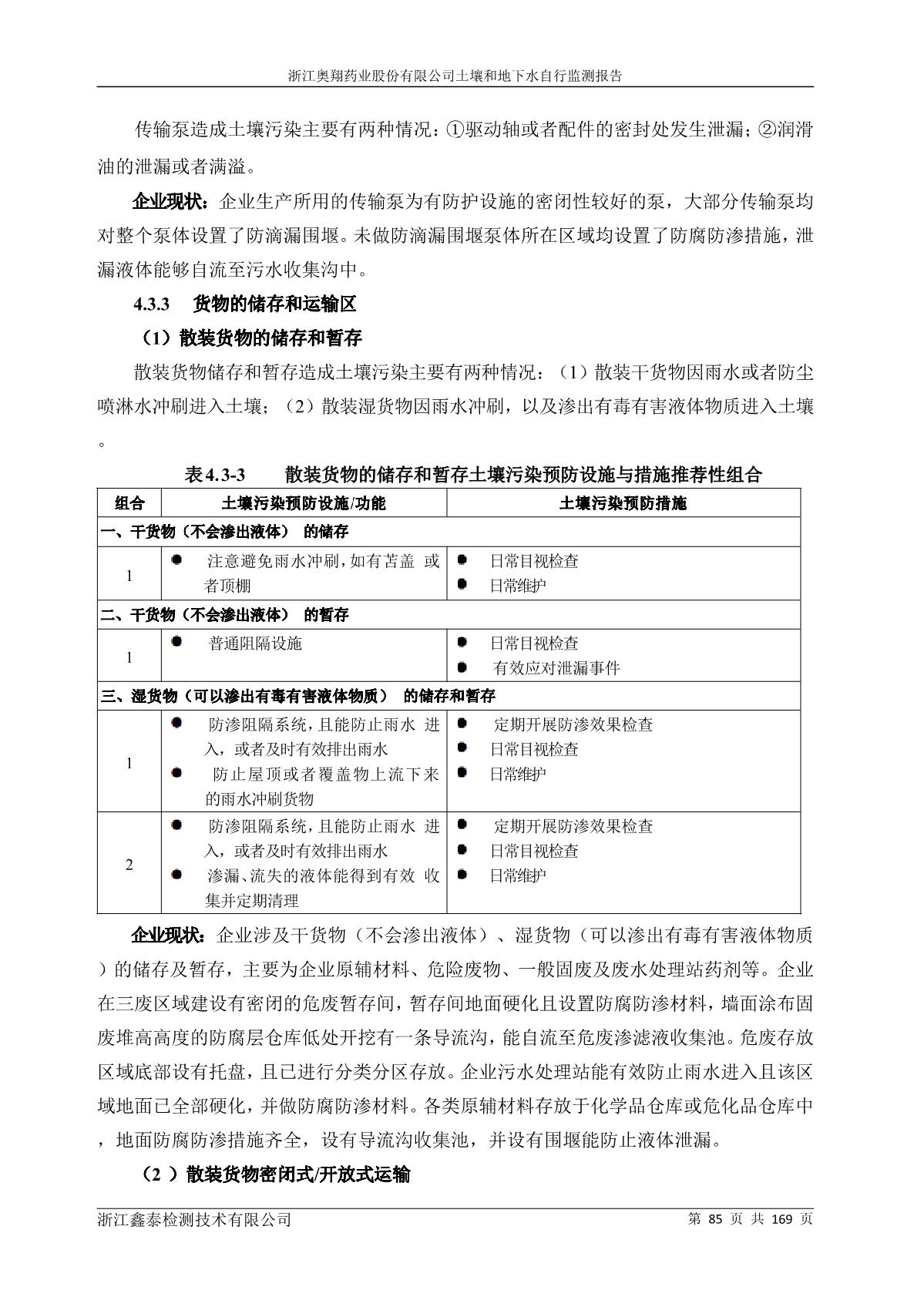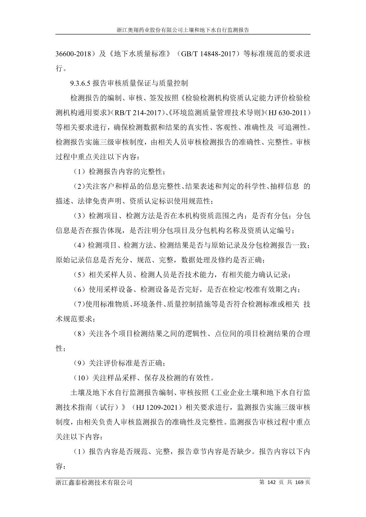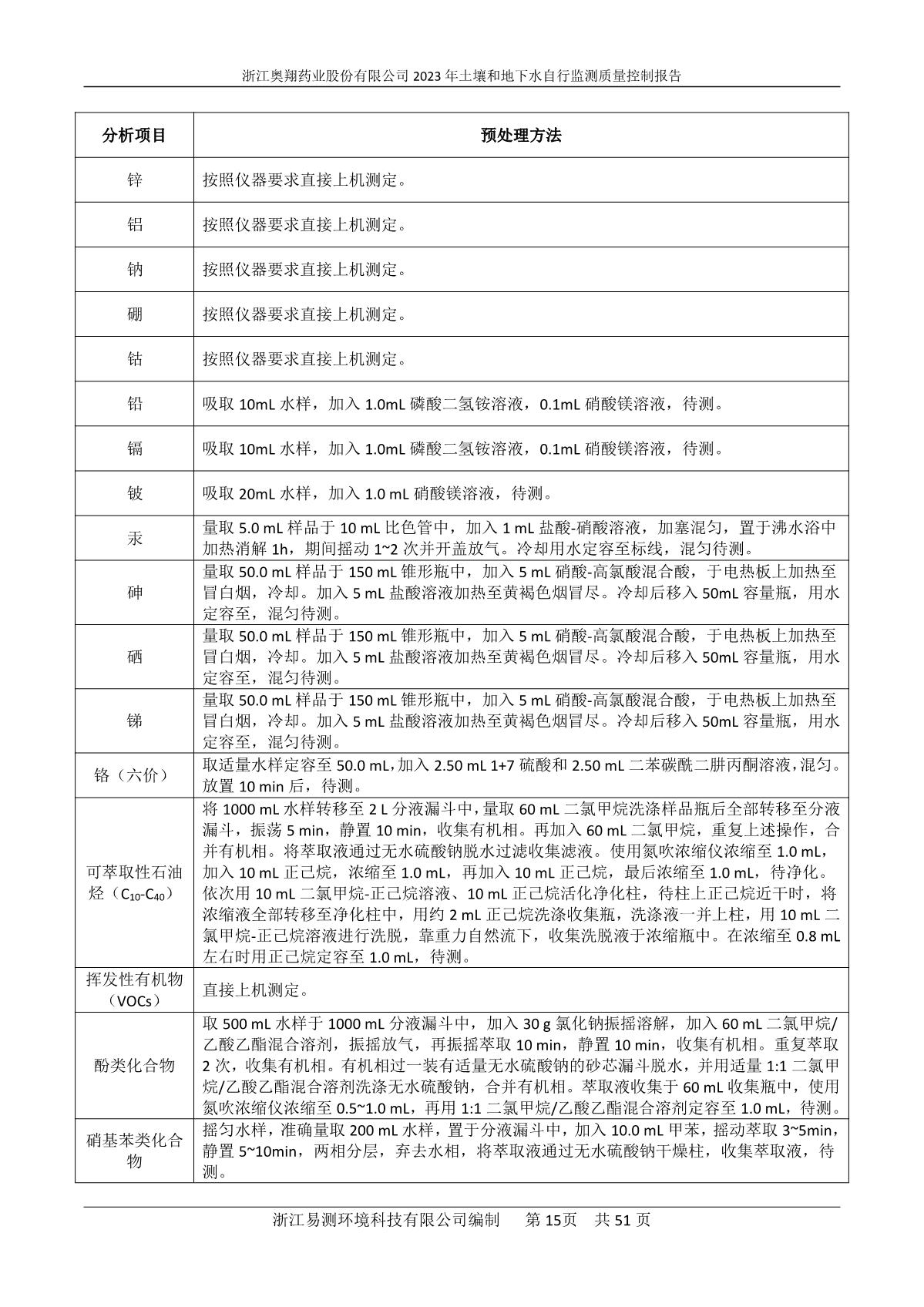 浙江奥翔药业股份有限公司土壤和地下水自行监测报告2023