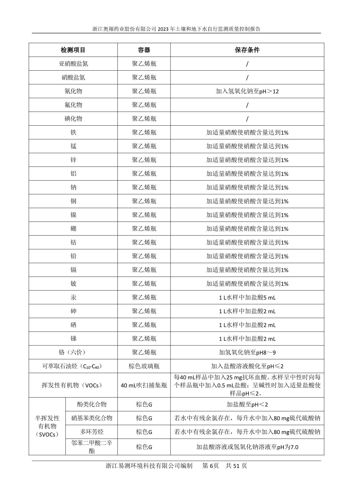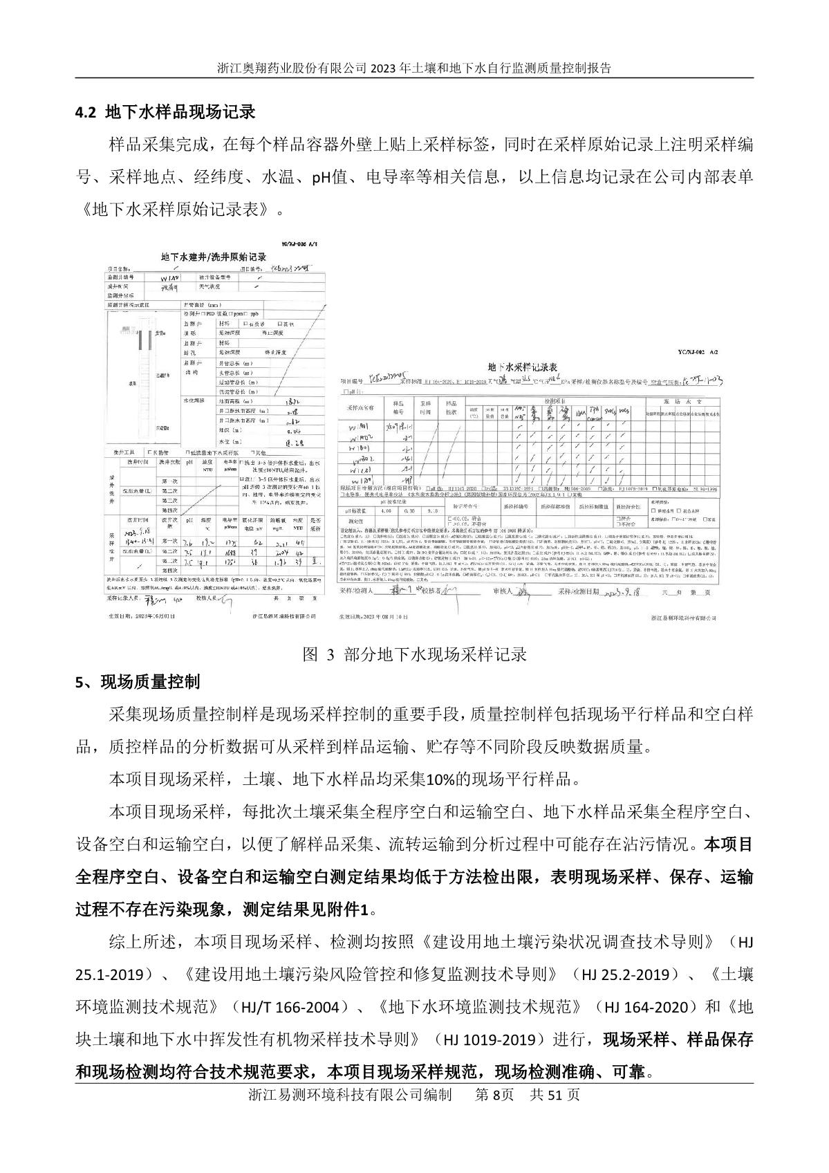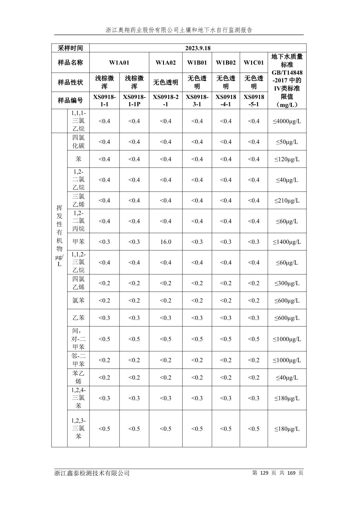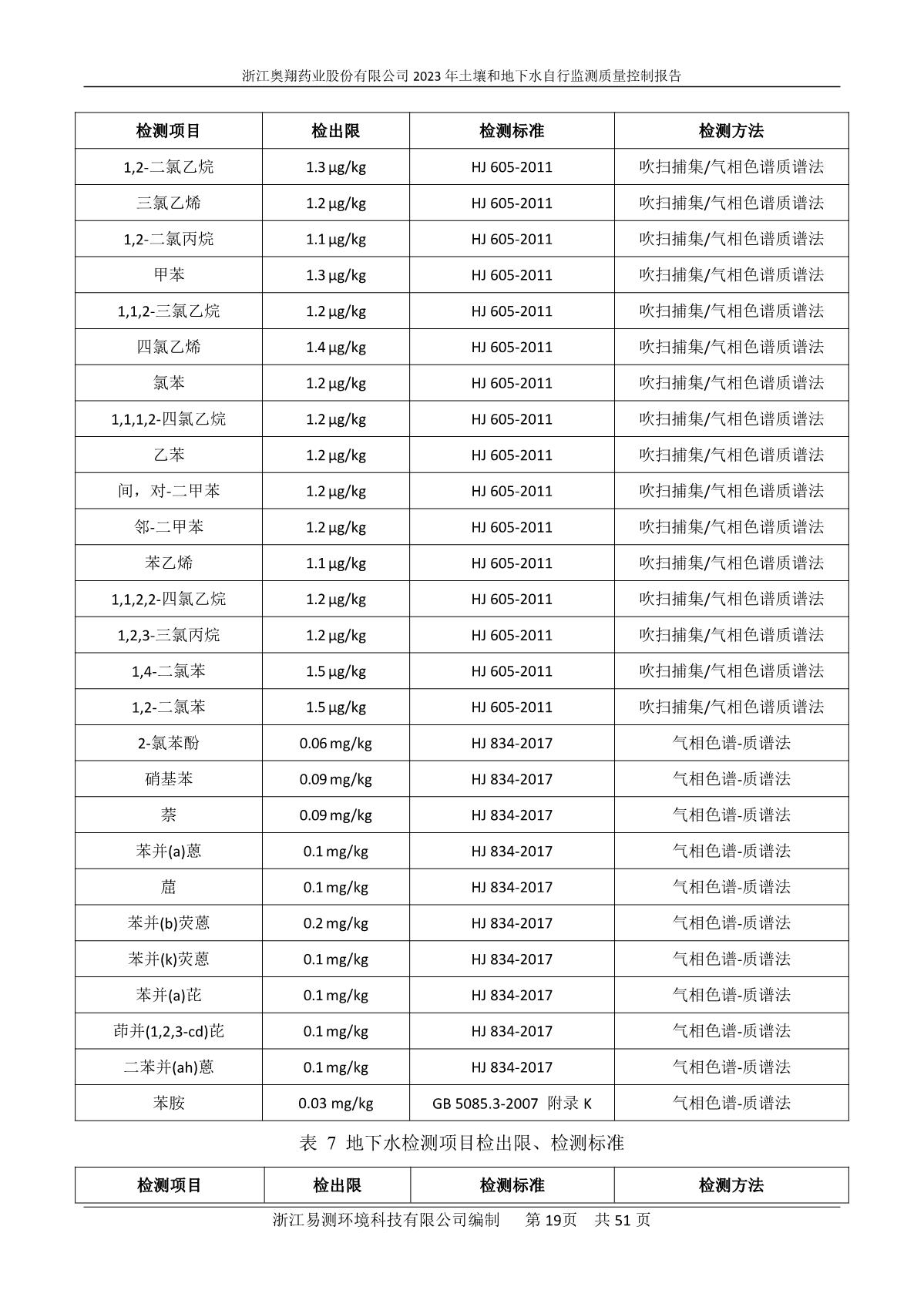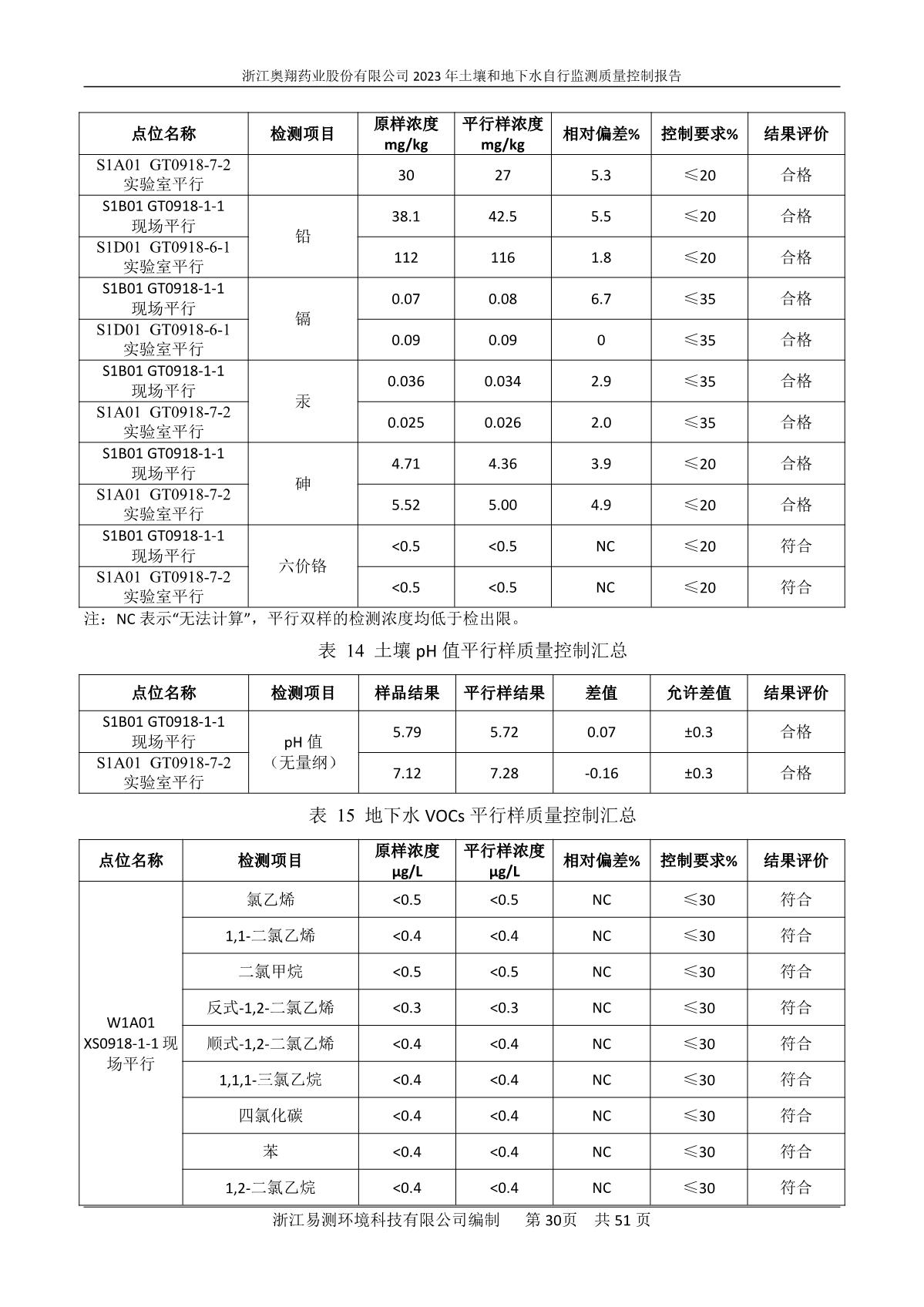 浙江奥翔药业股份有限公司土壤和地下水自行监测报告2023