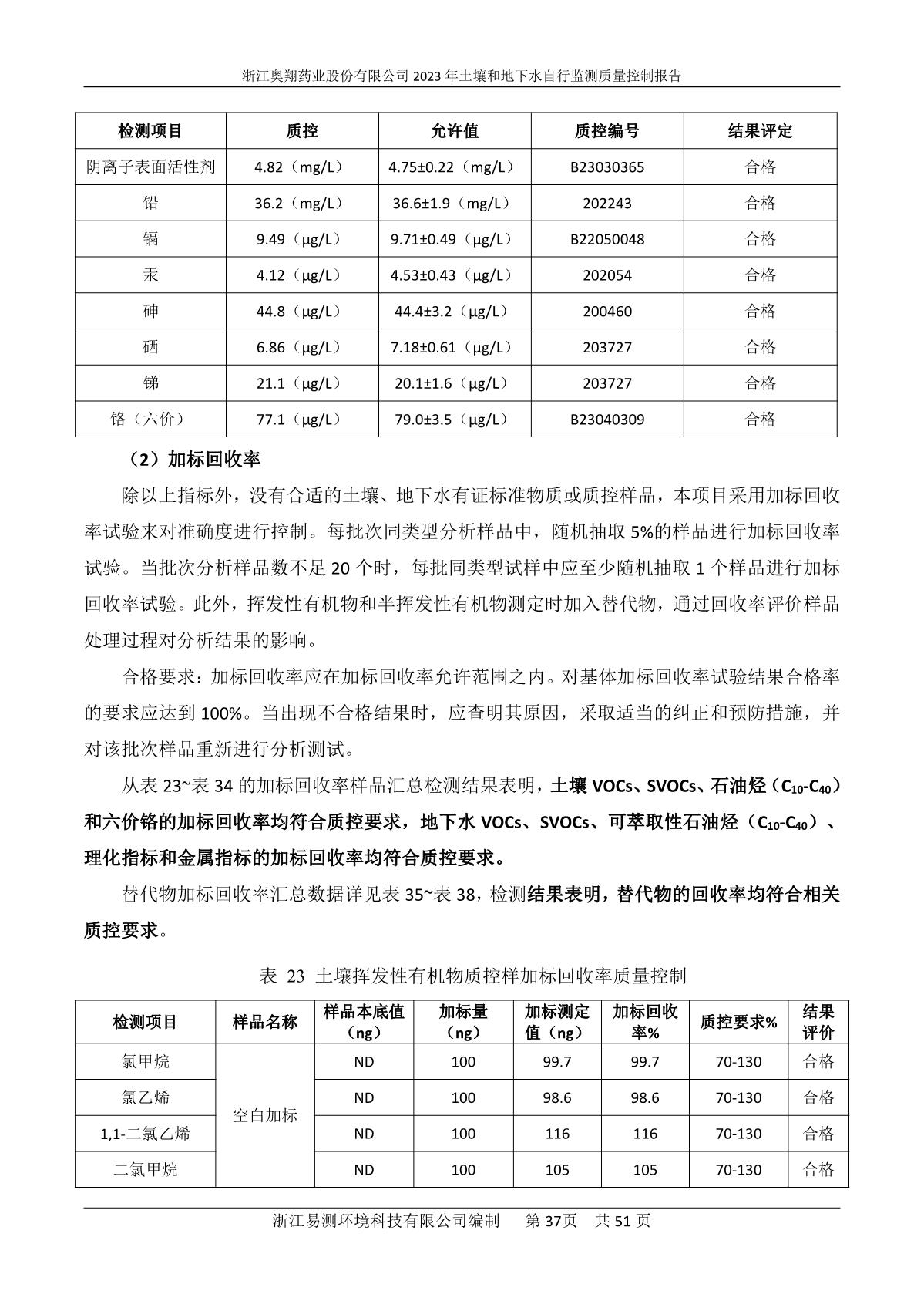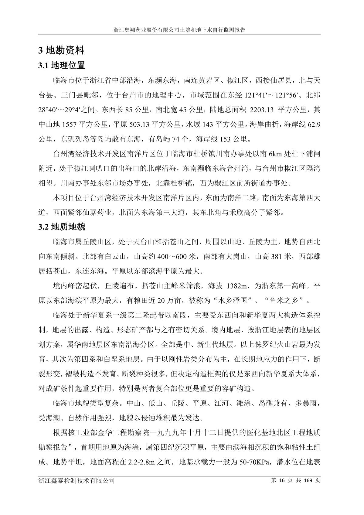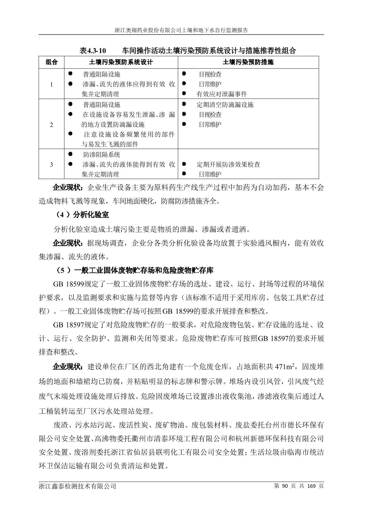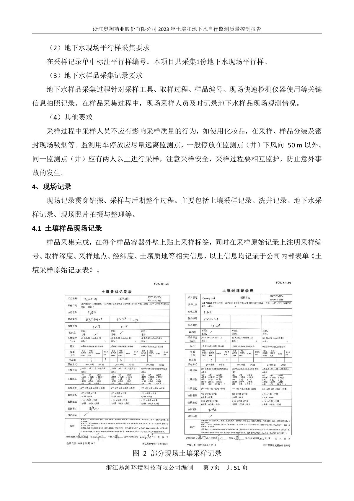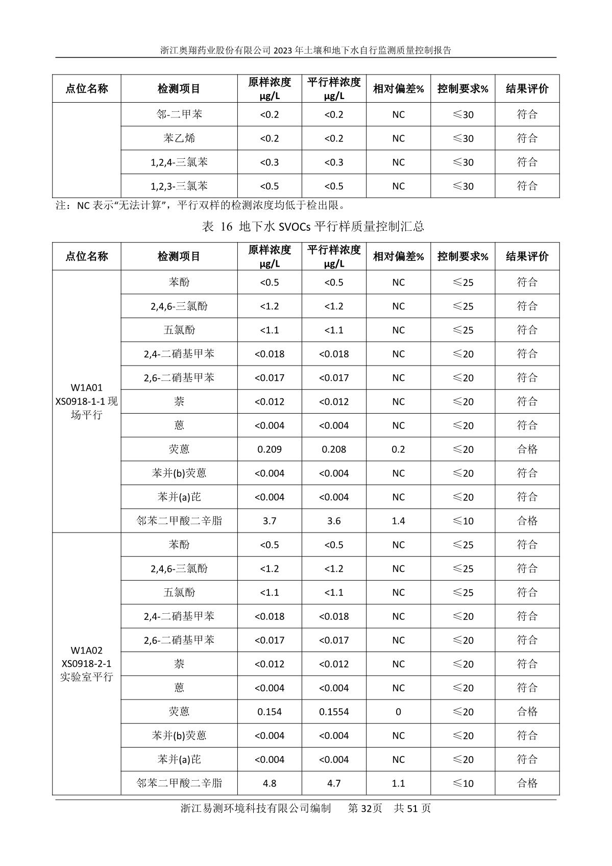 浙江奥翔药业股份有限公司土壤和地下水自行监测报告2023
