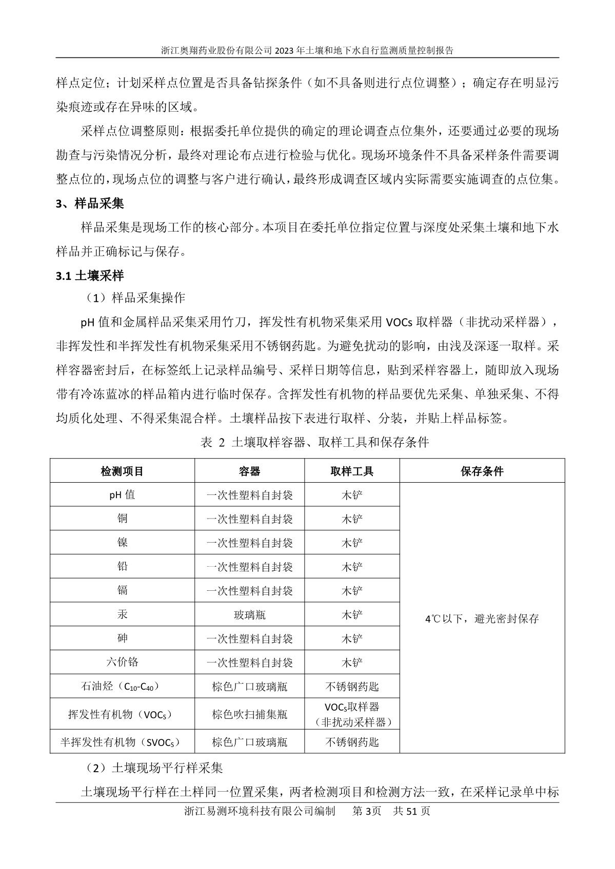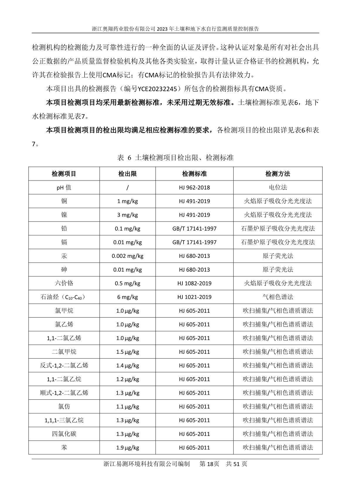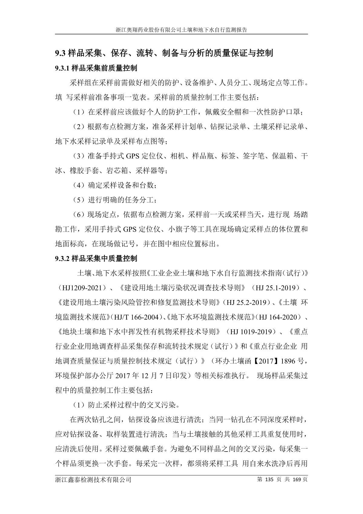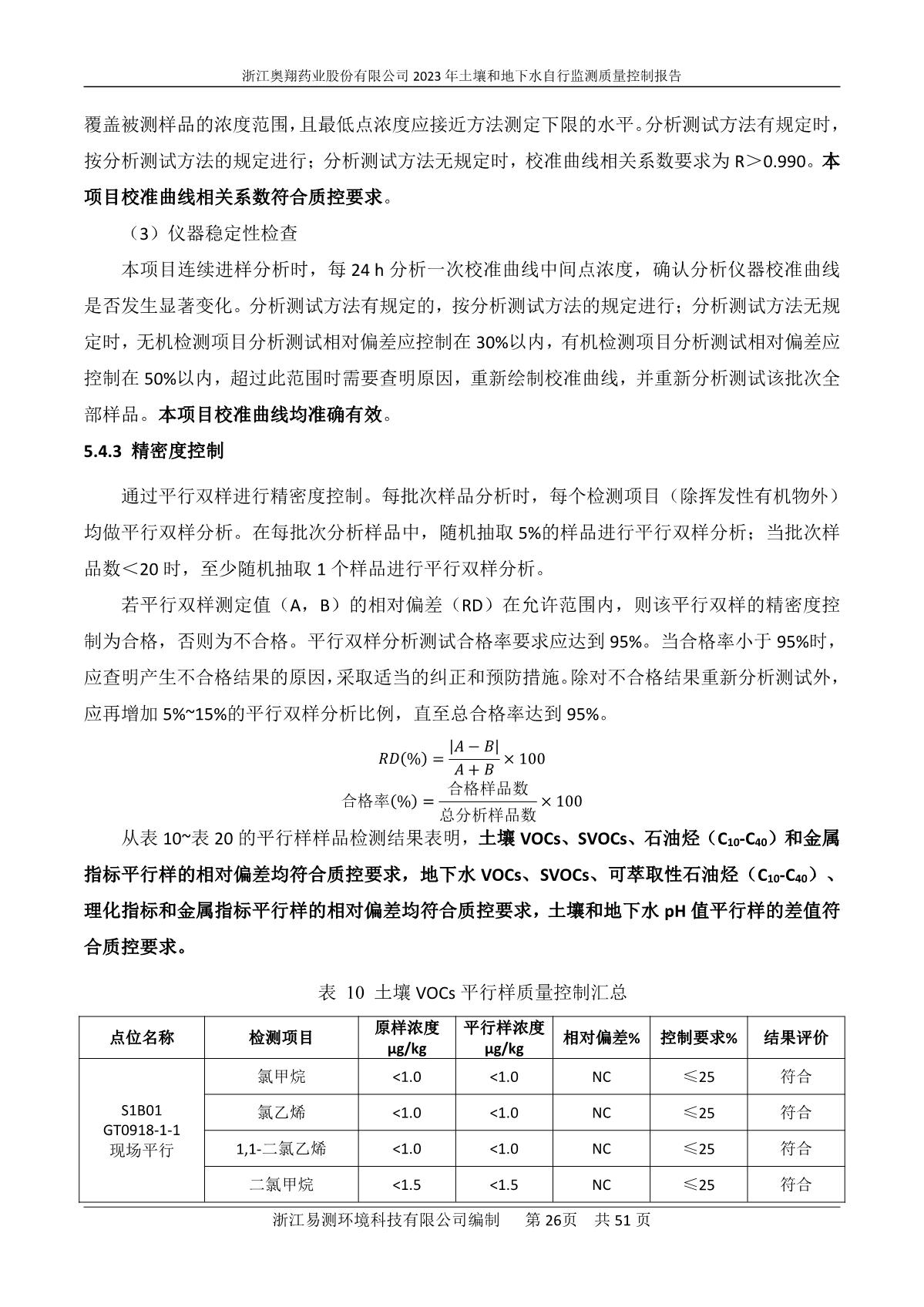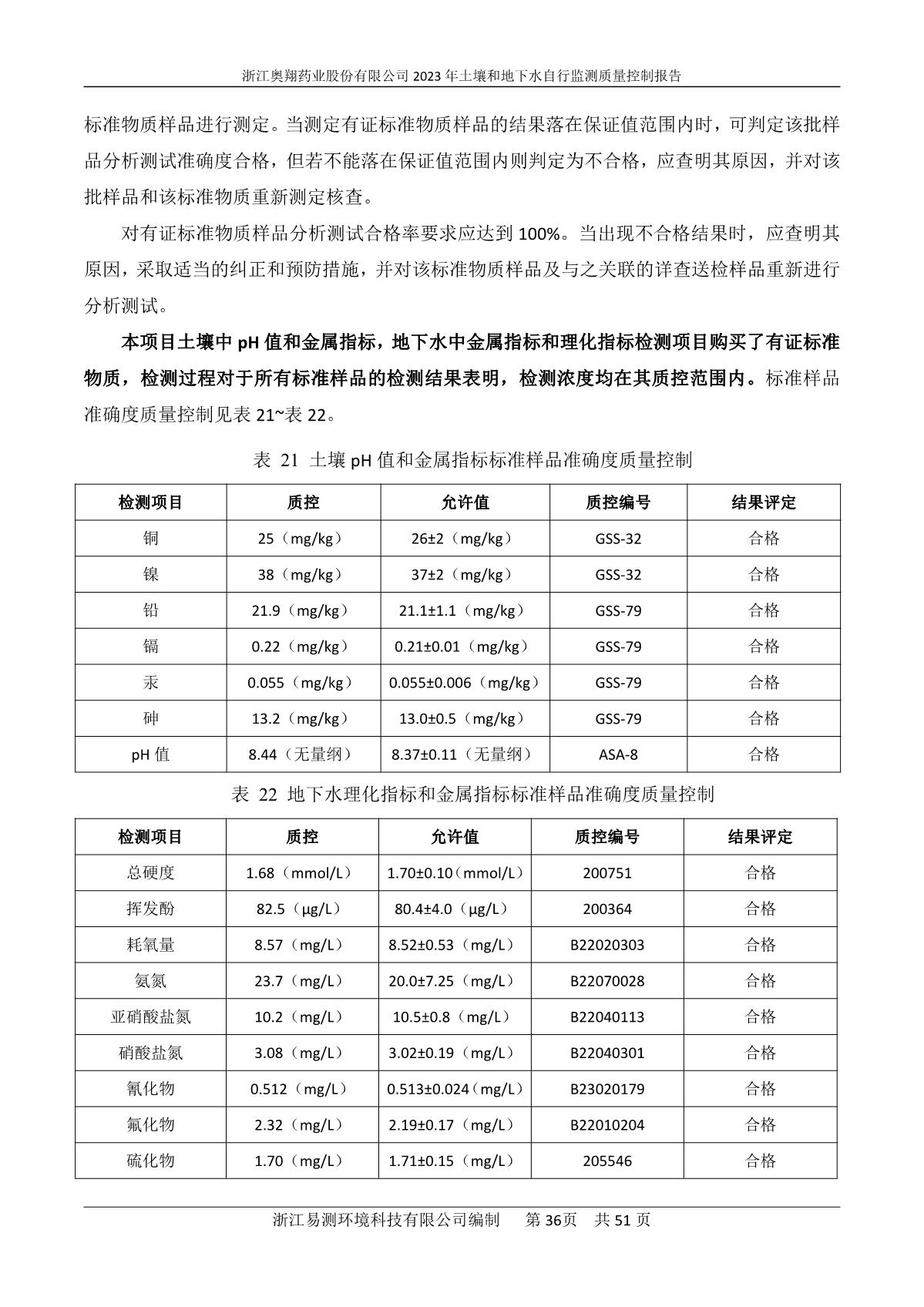 浙江奥翔药业股份有限公司土壤和地下水自行监测报告2023
