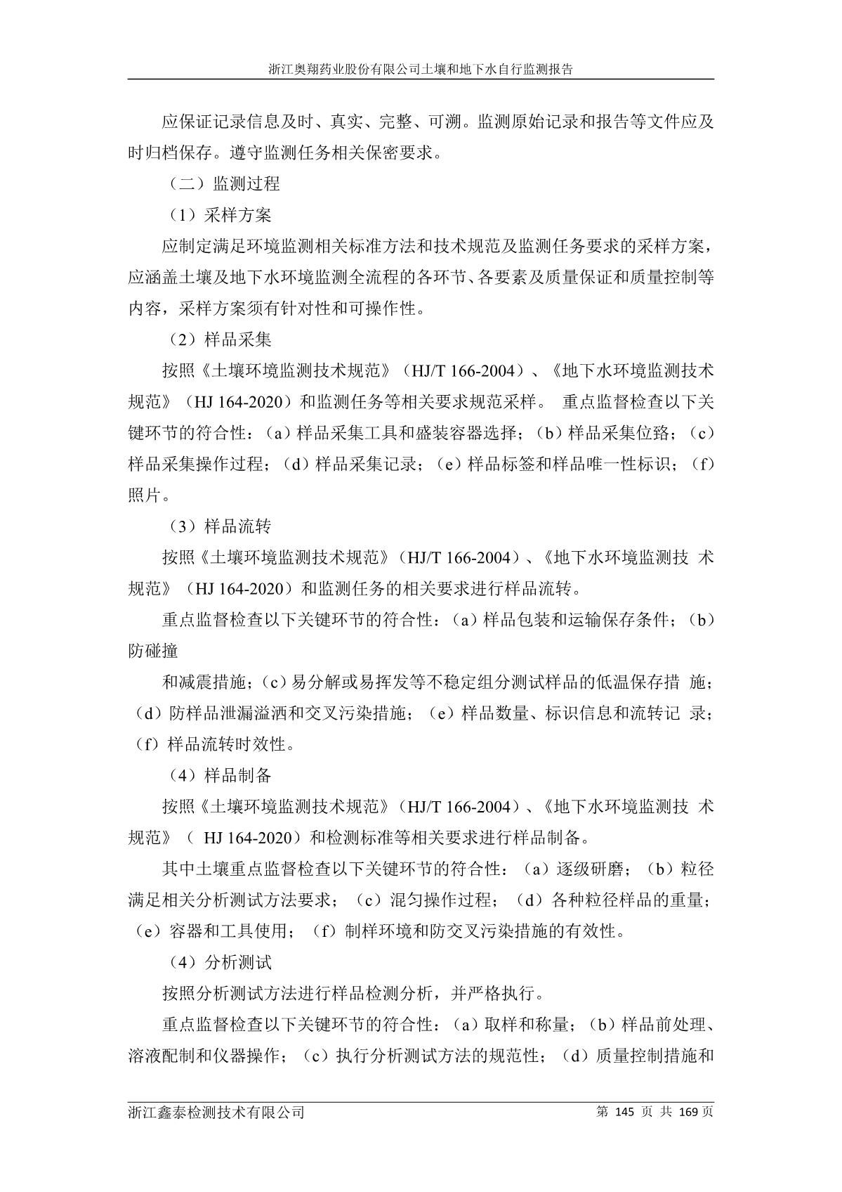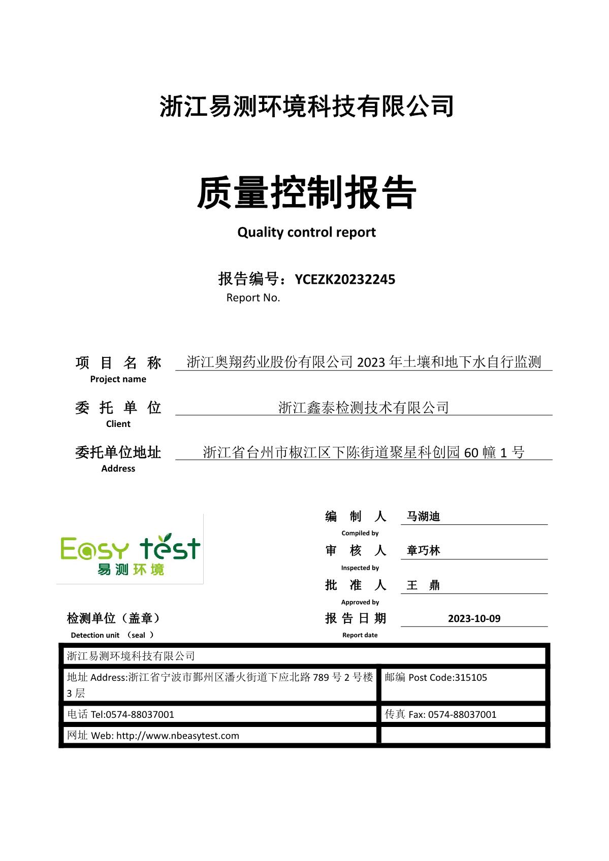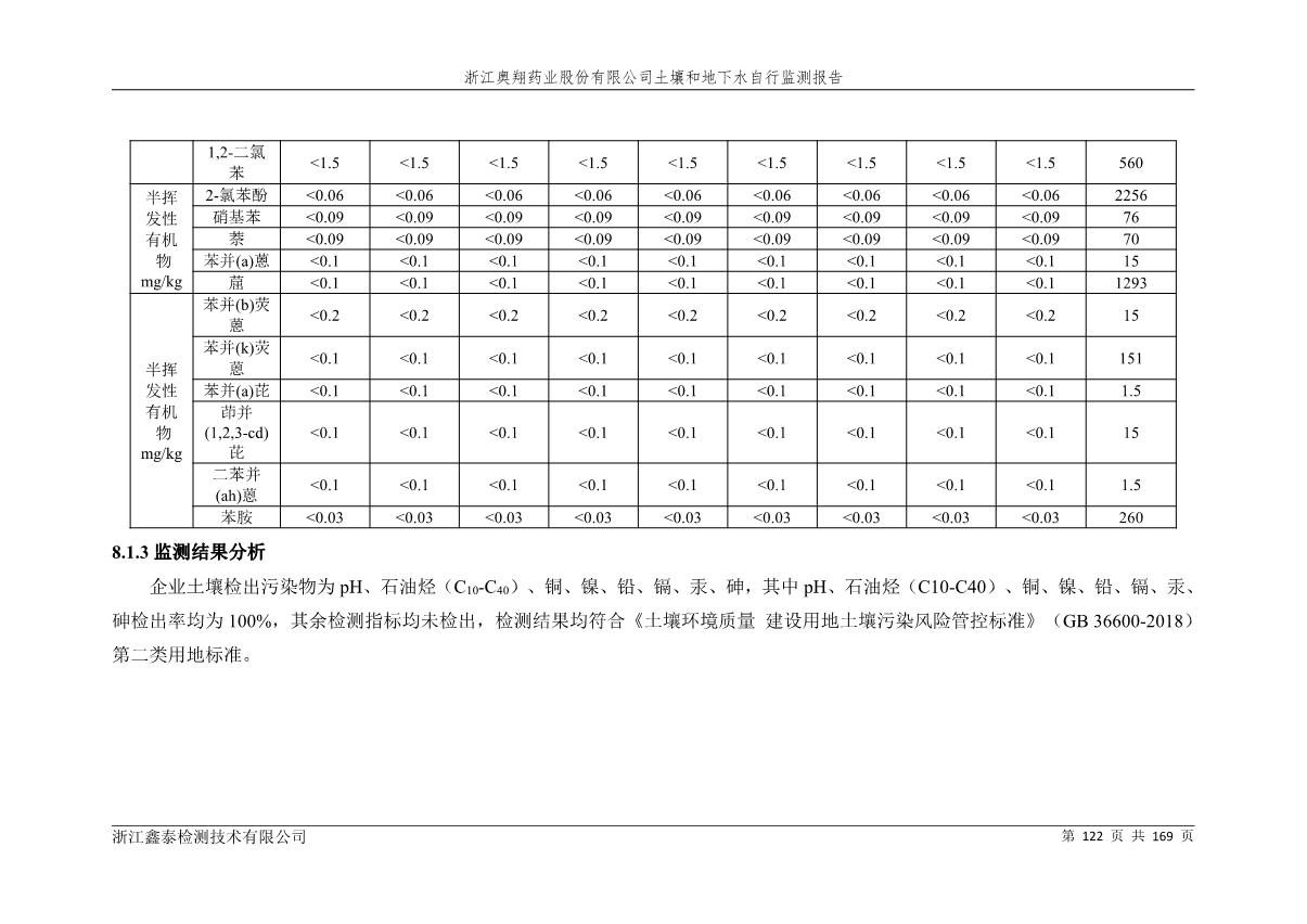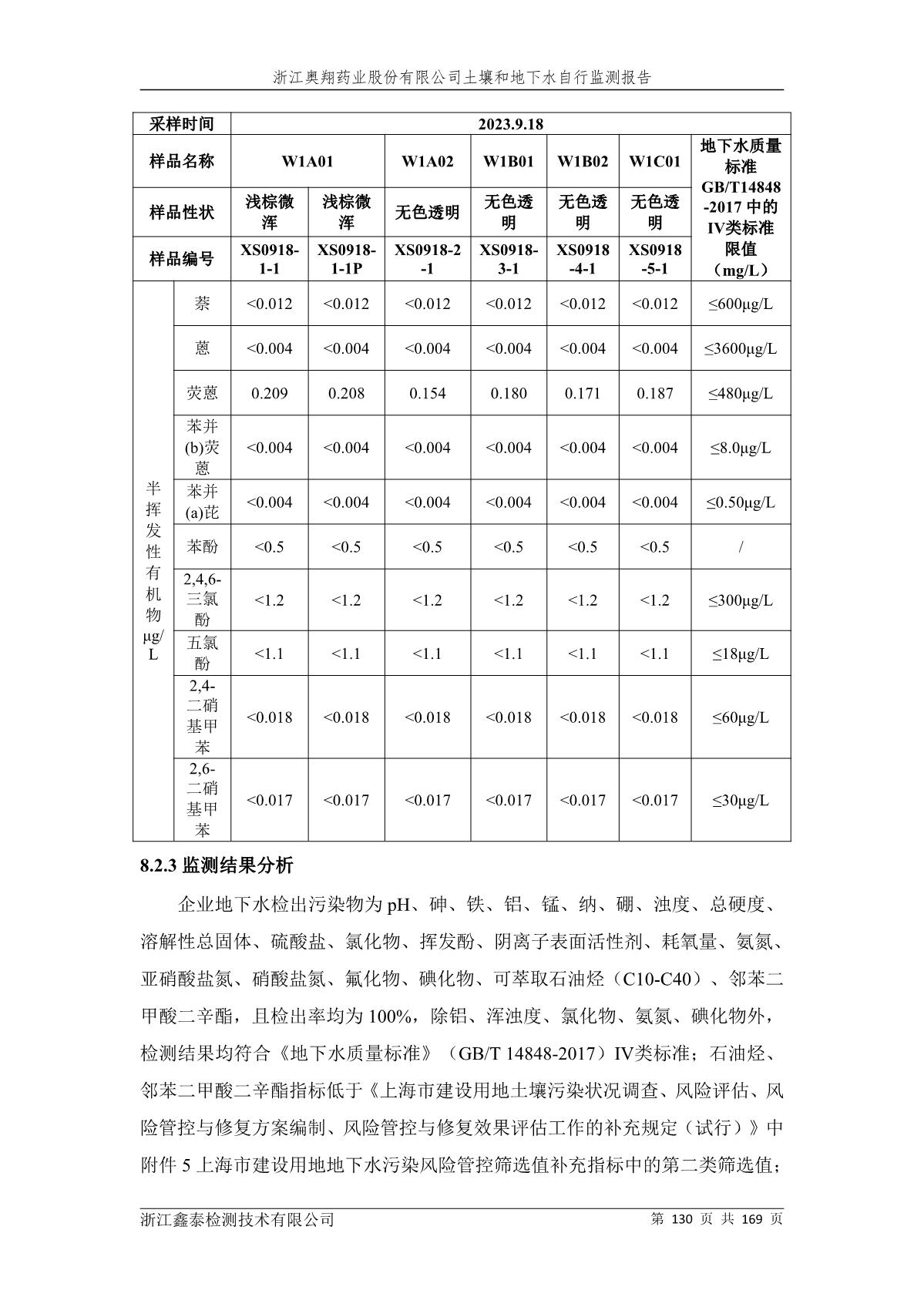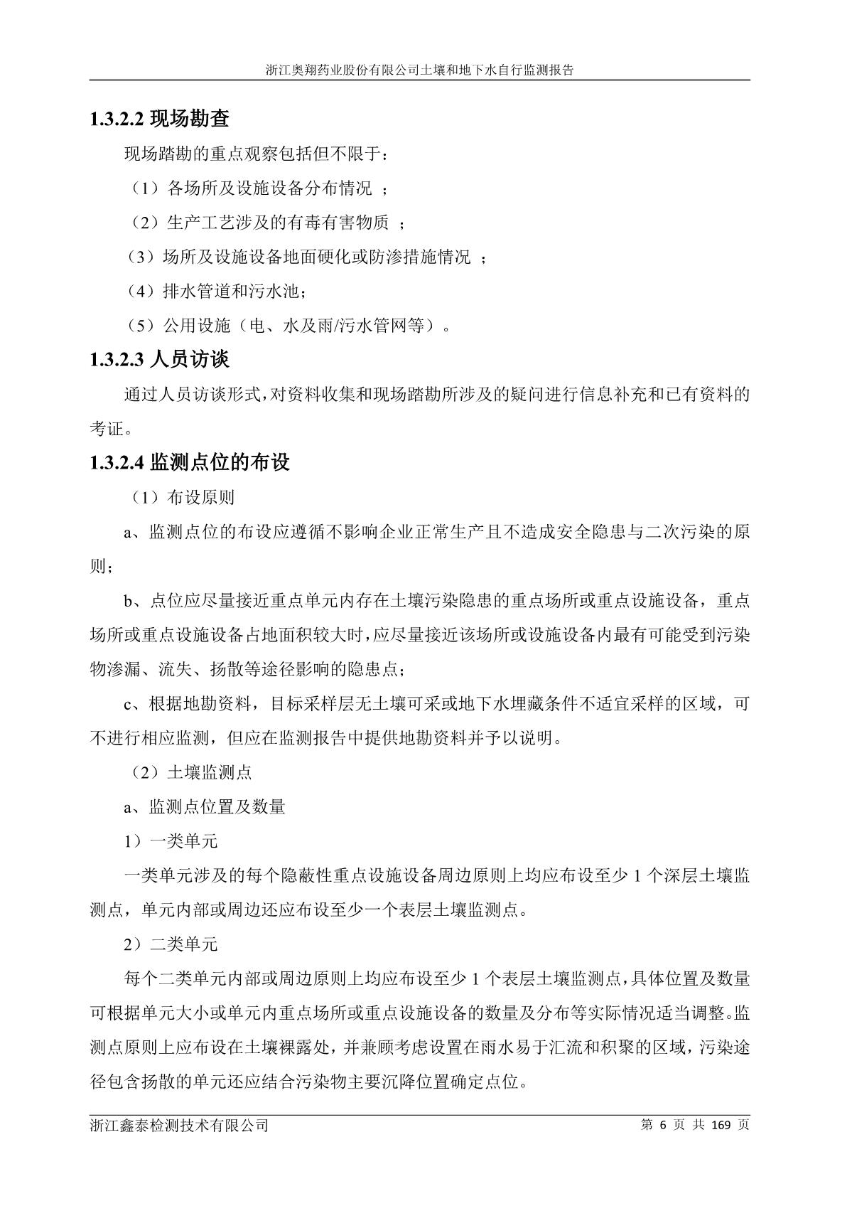浙江奥翔药业股份有限公司土壤和地下水自行监测报告2023