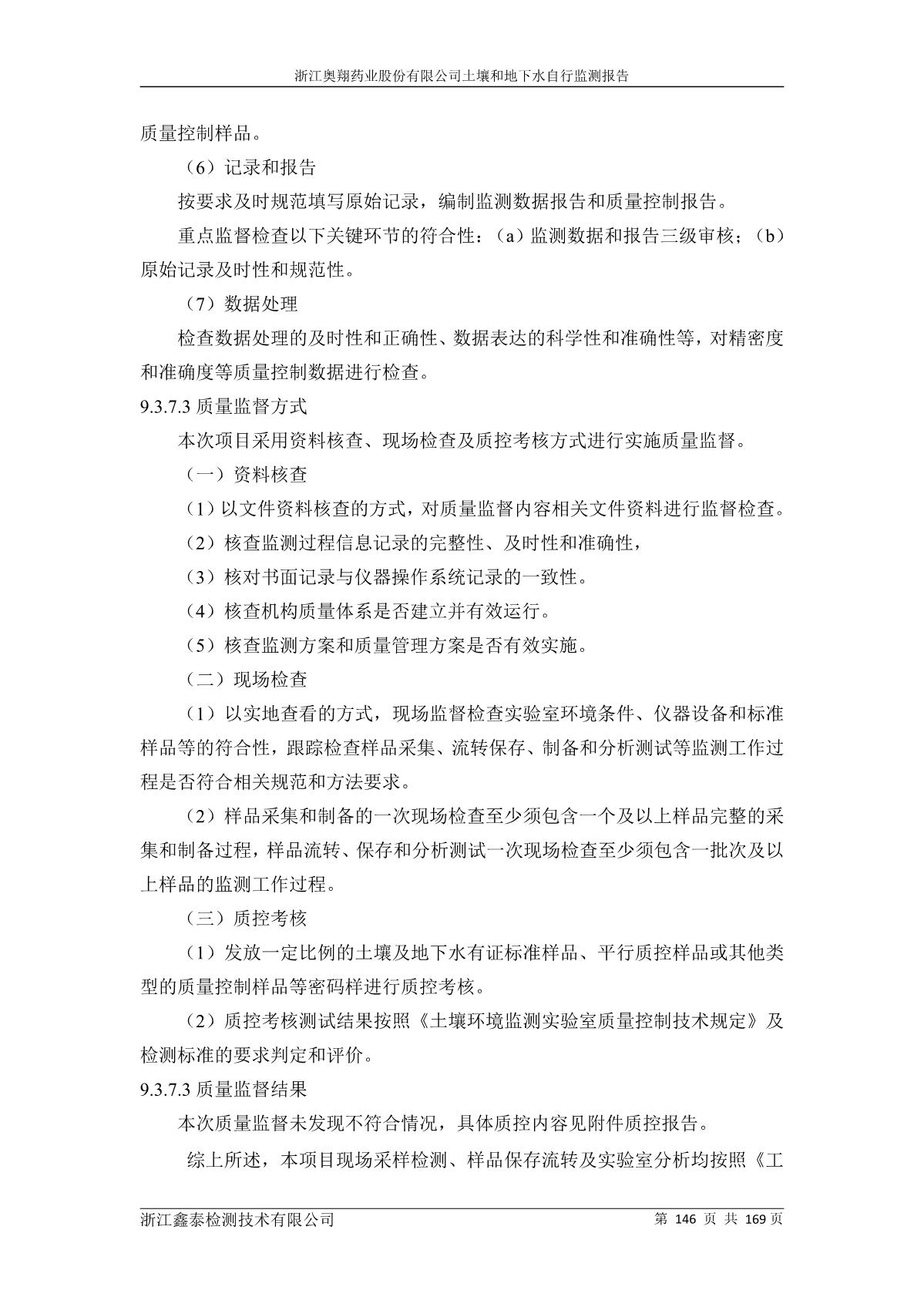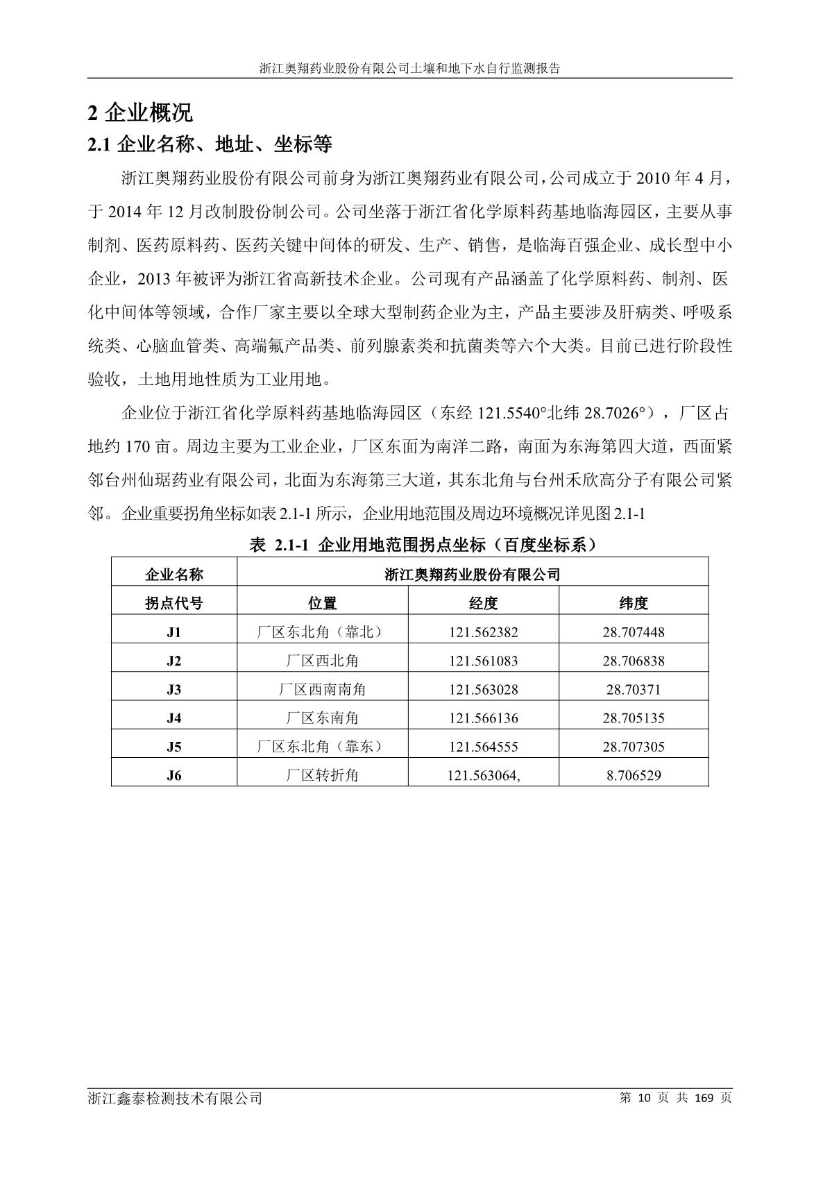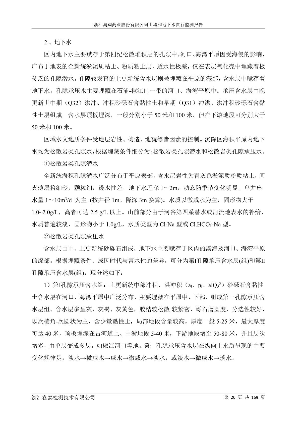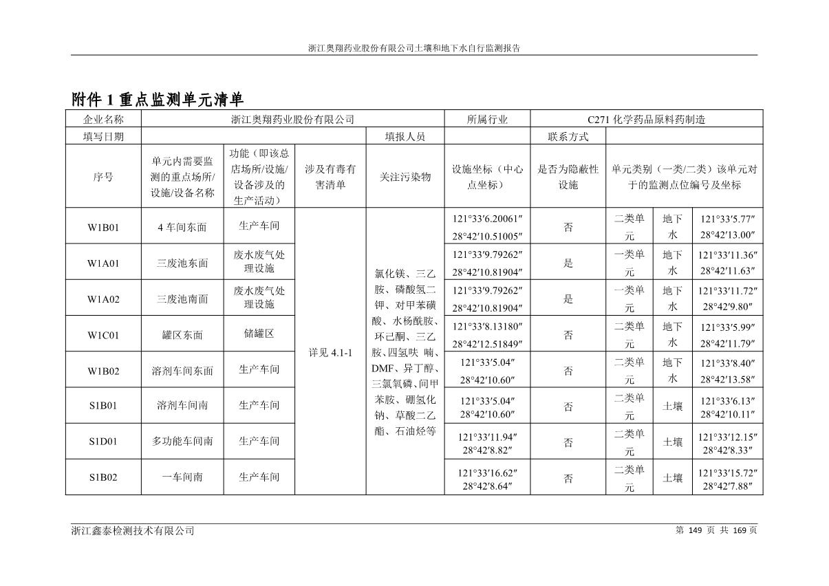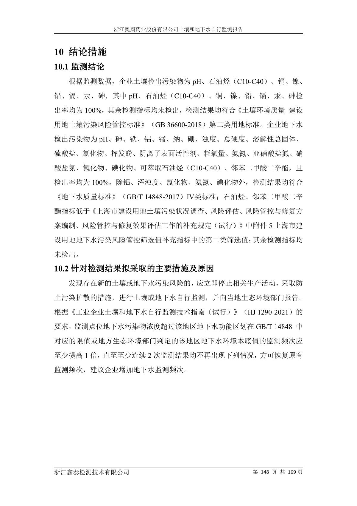 浙江奥翔药业股份有限公司土壤和地下水自行监测报告2023
