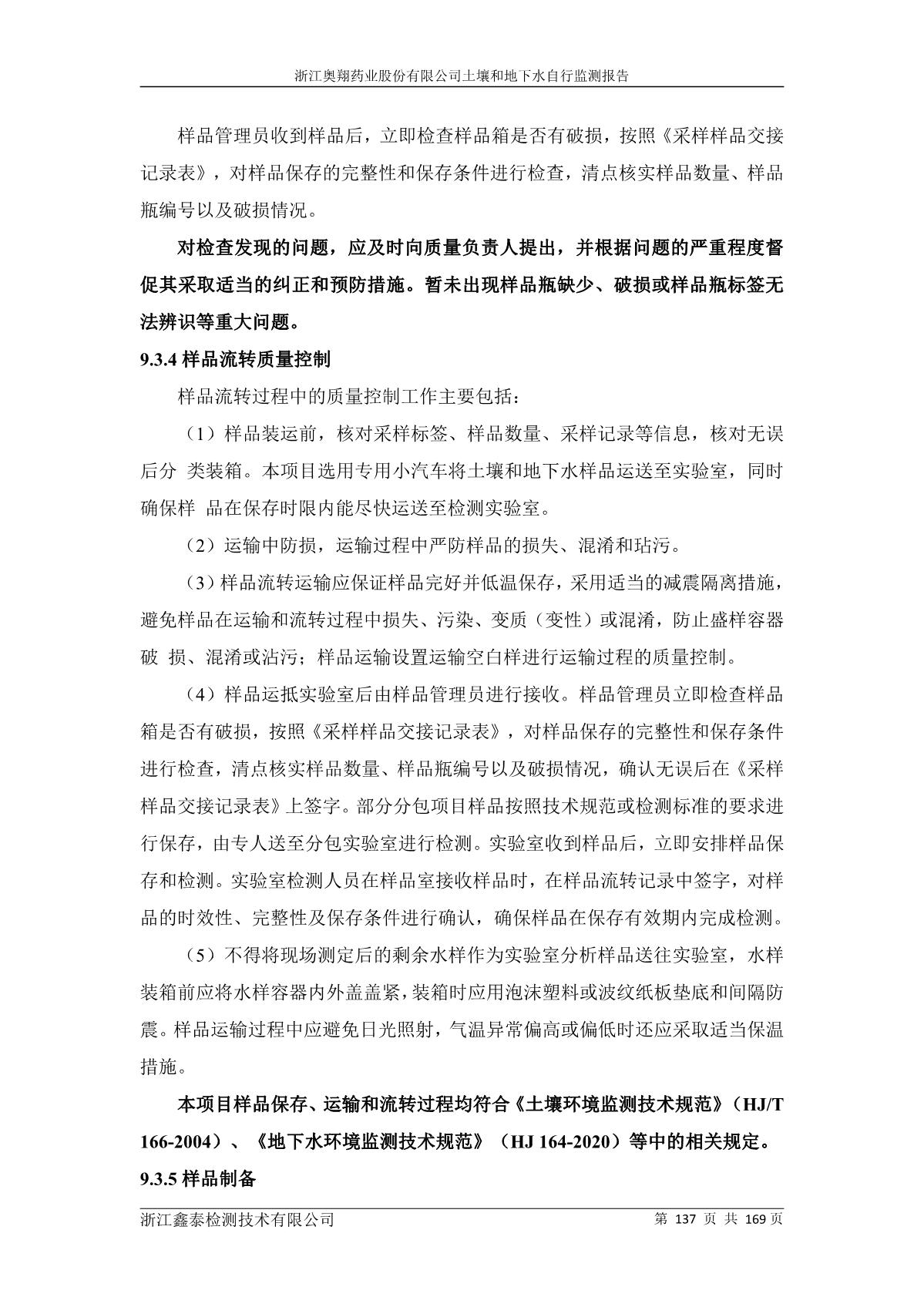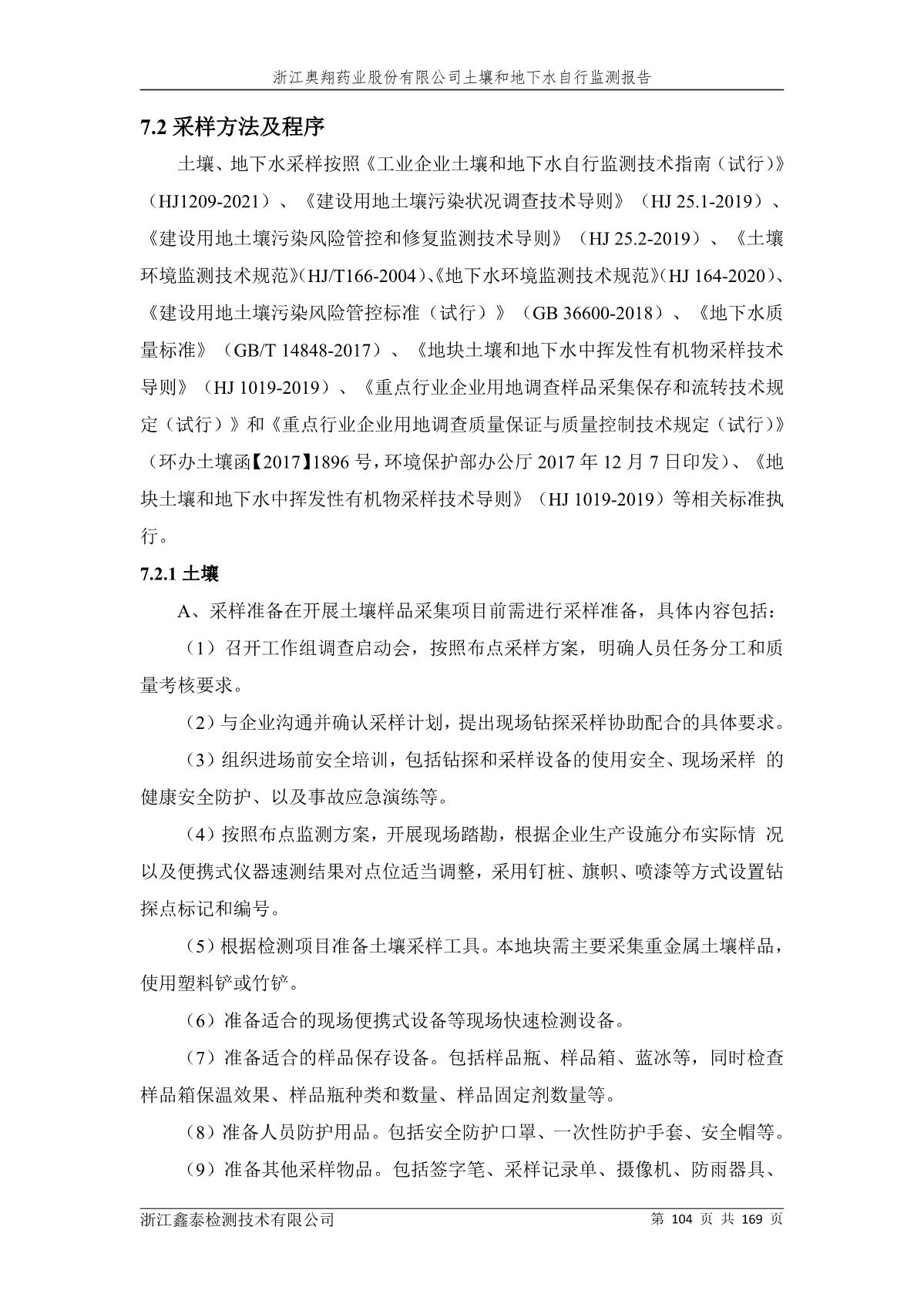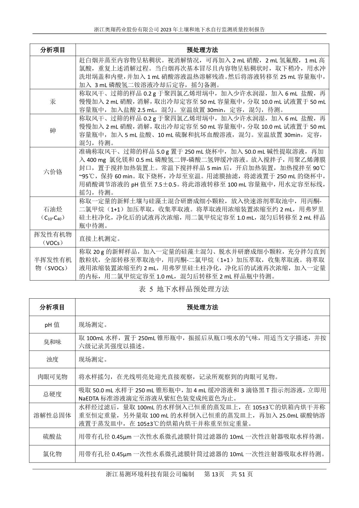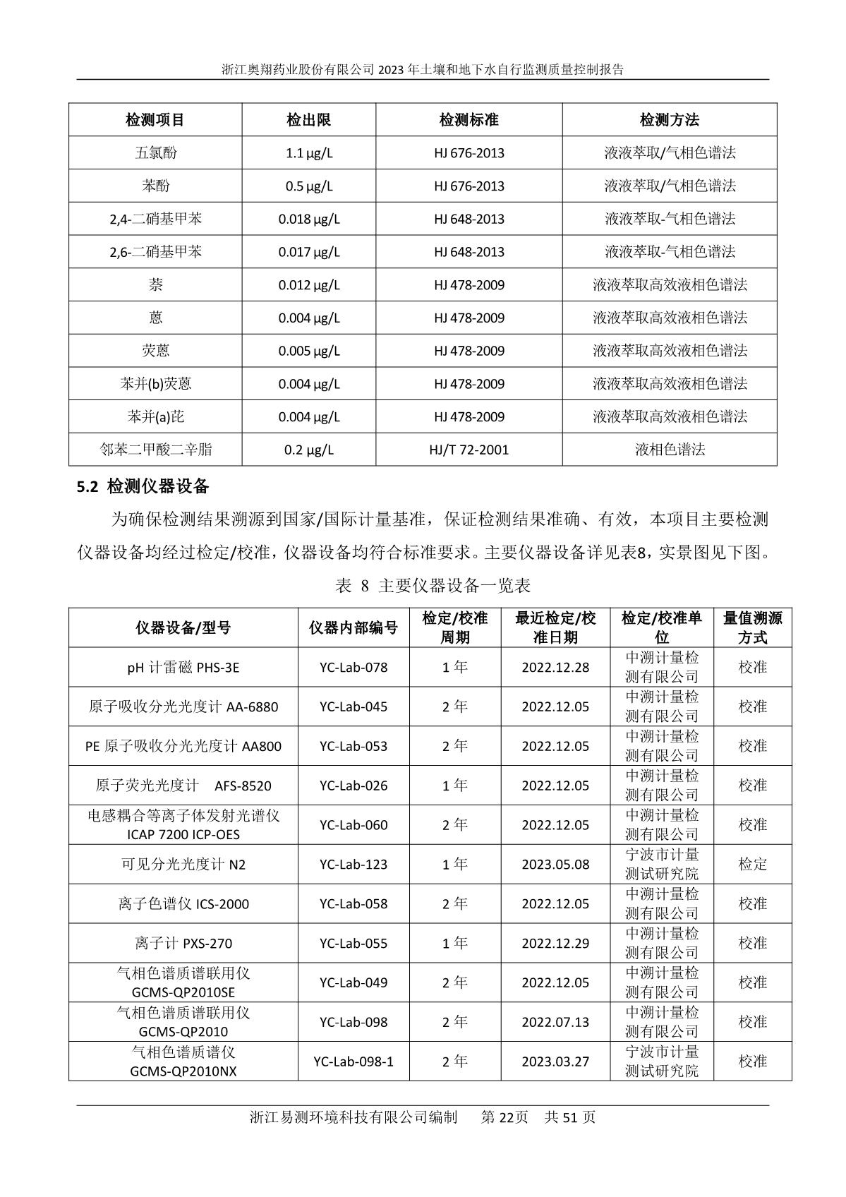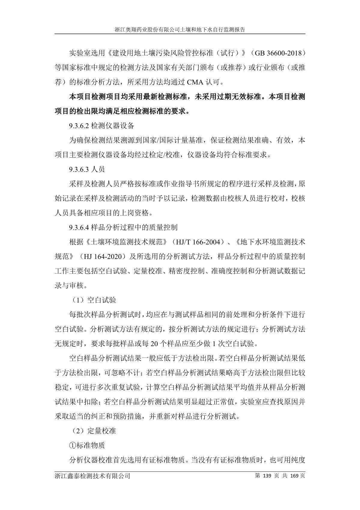 浙江奥翔药业股份有限公司土壤和地下水自行监测报告2023