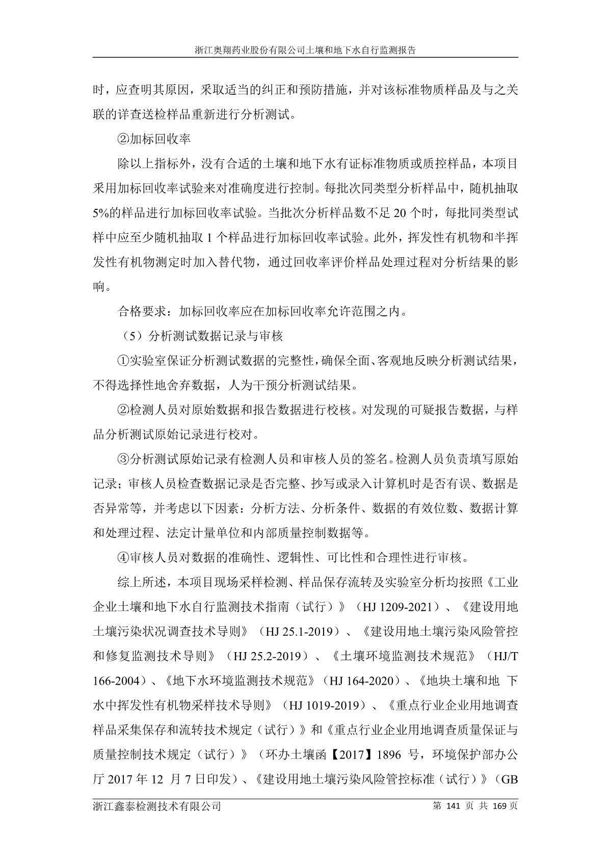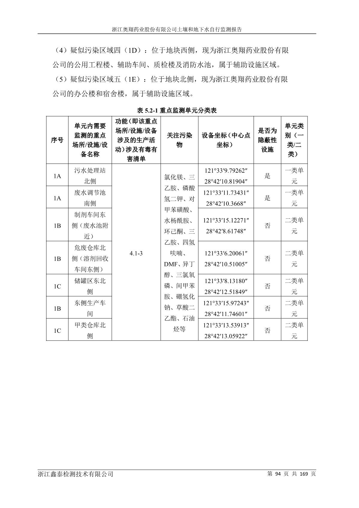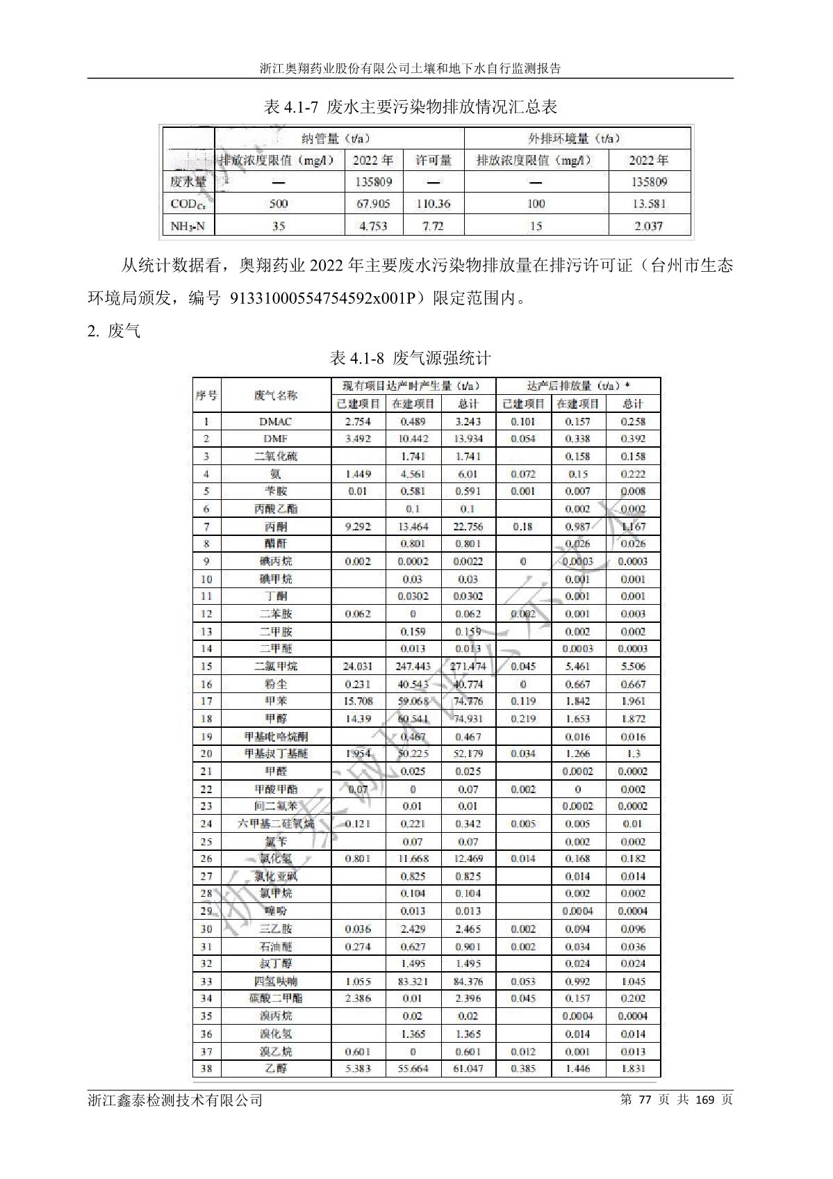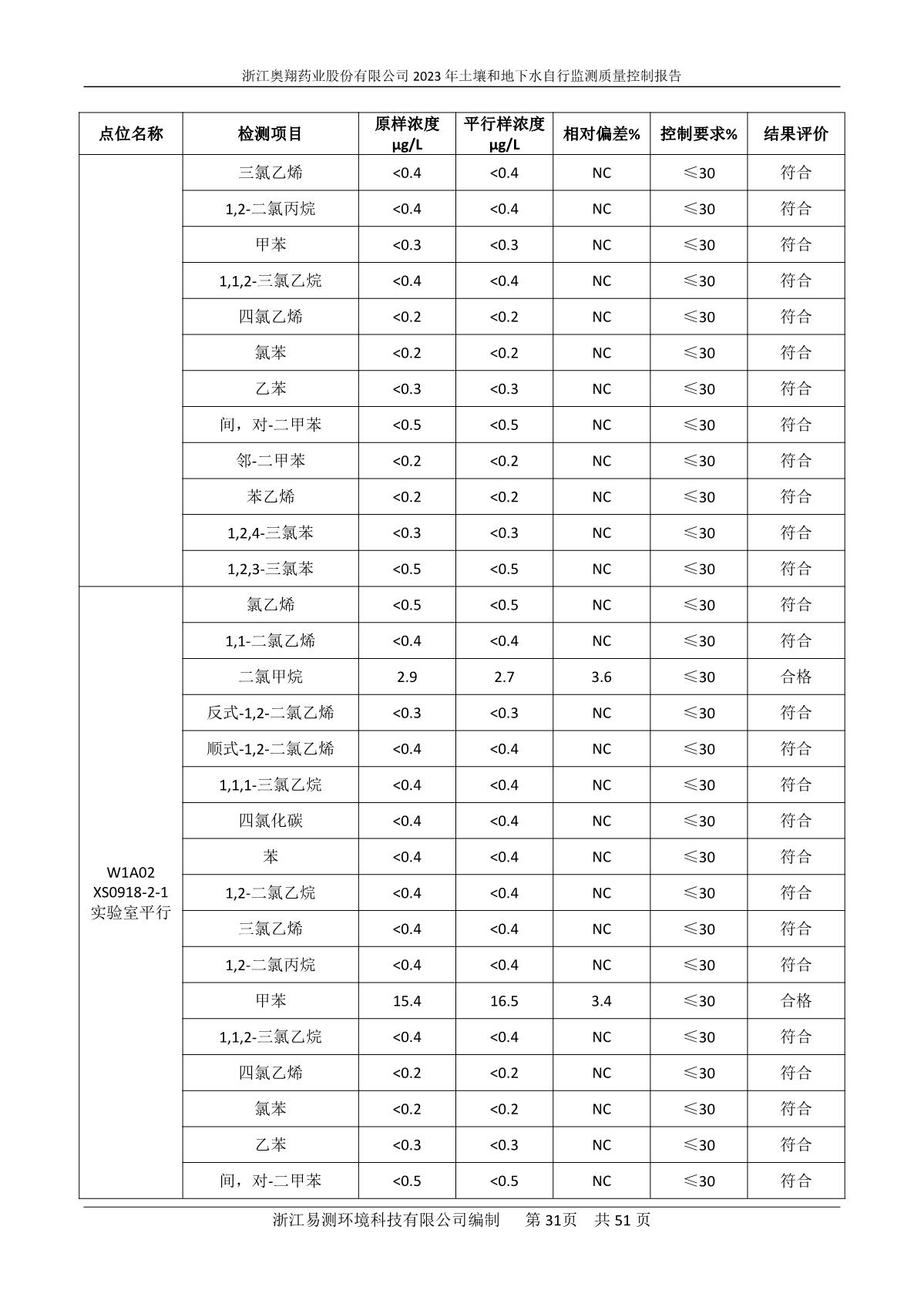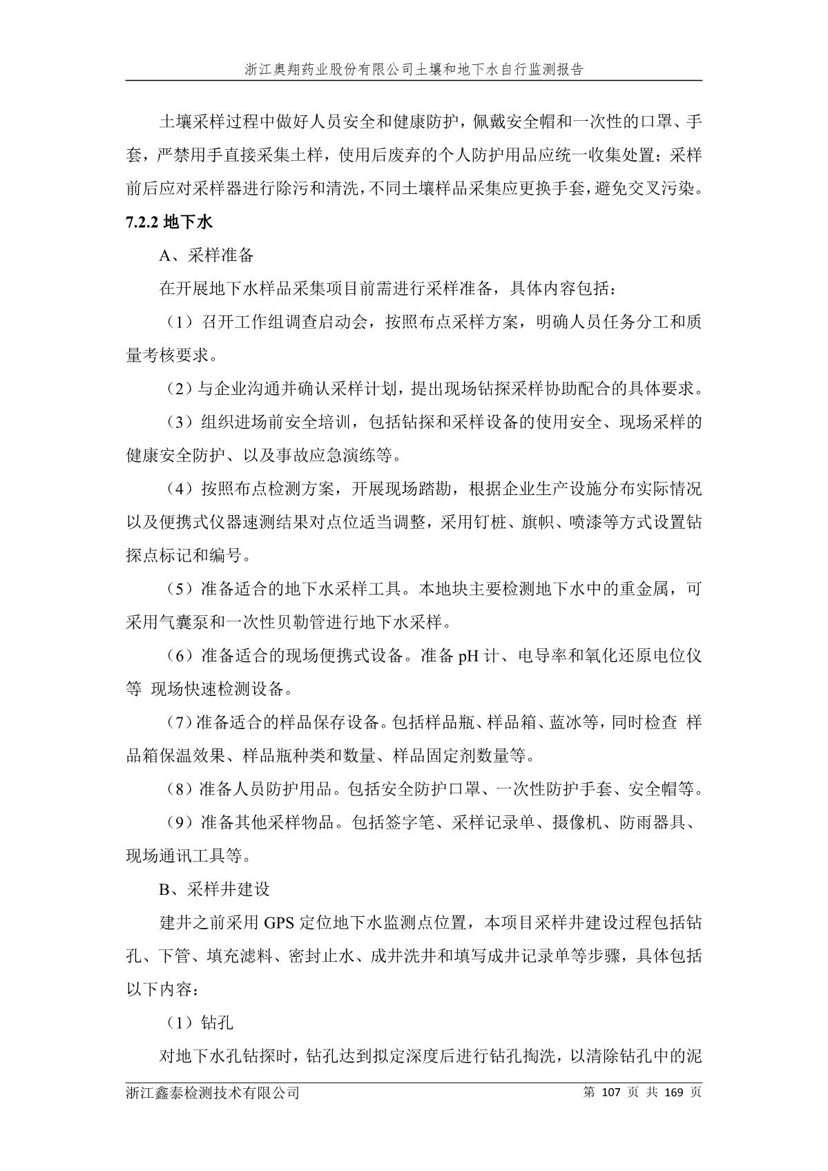 浙江奥翔药业股份有限公司土壤和地下水自行监测报告2023