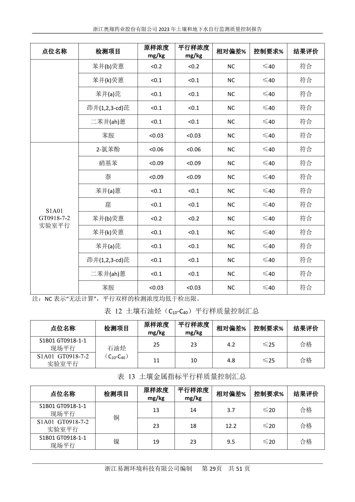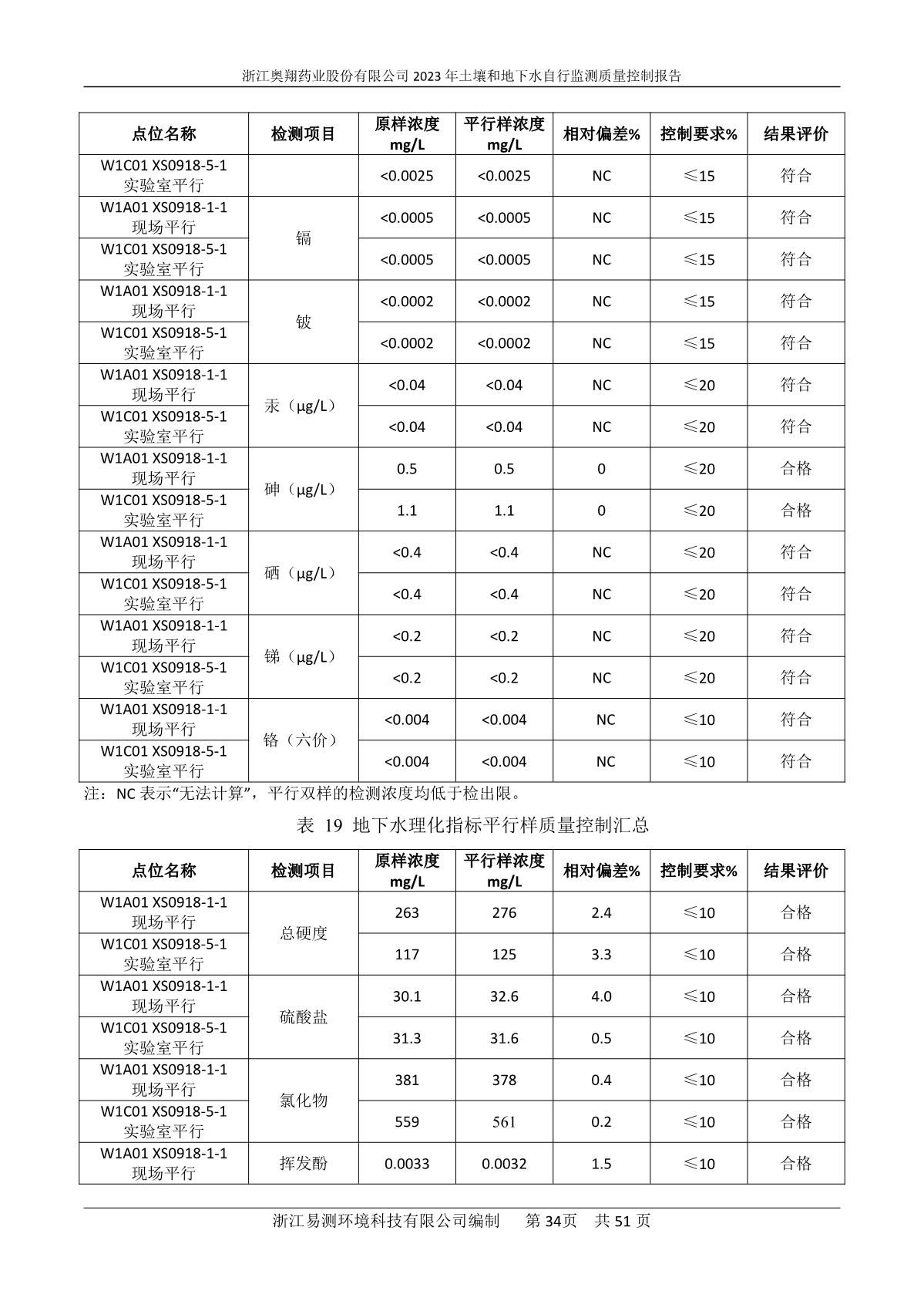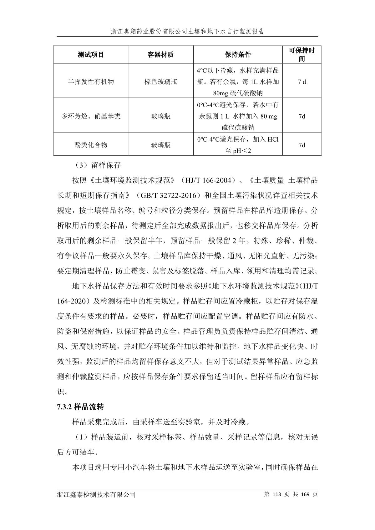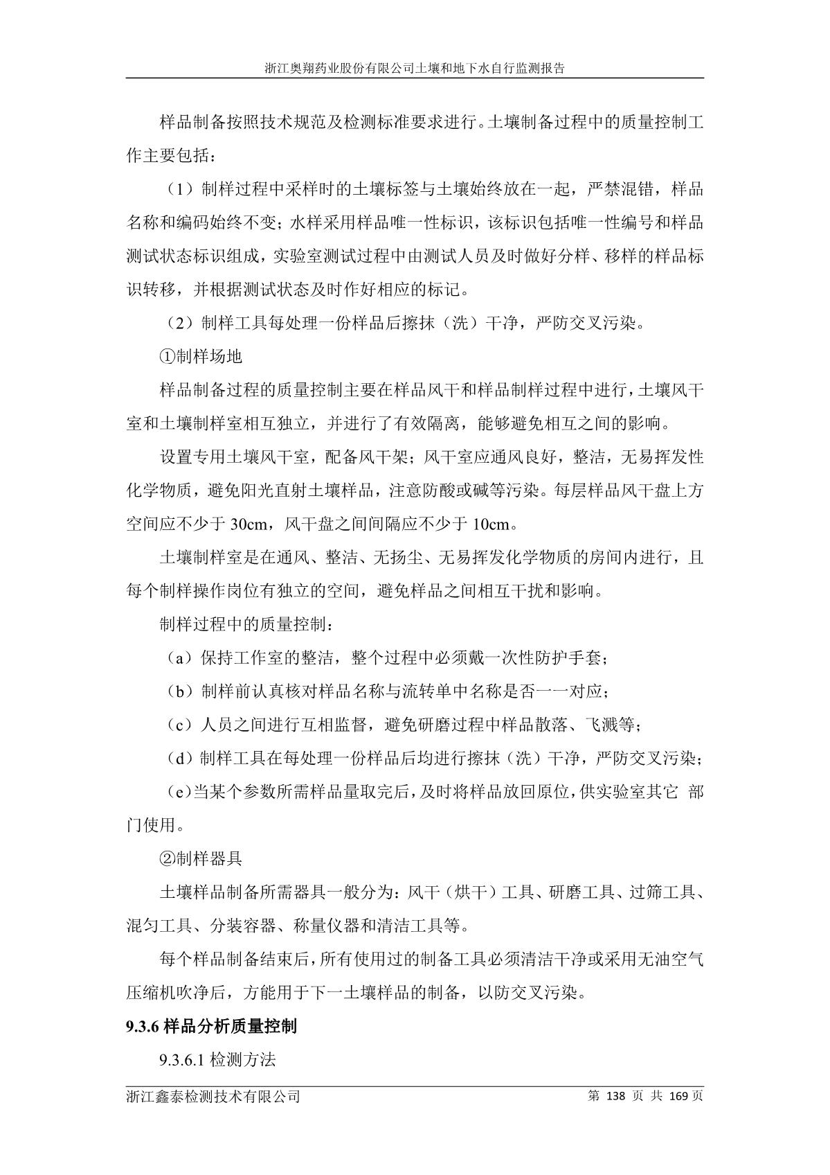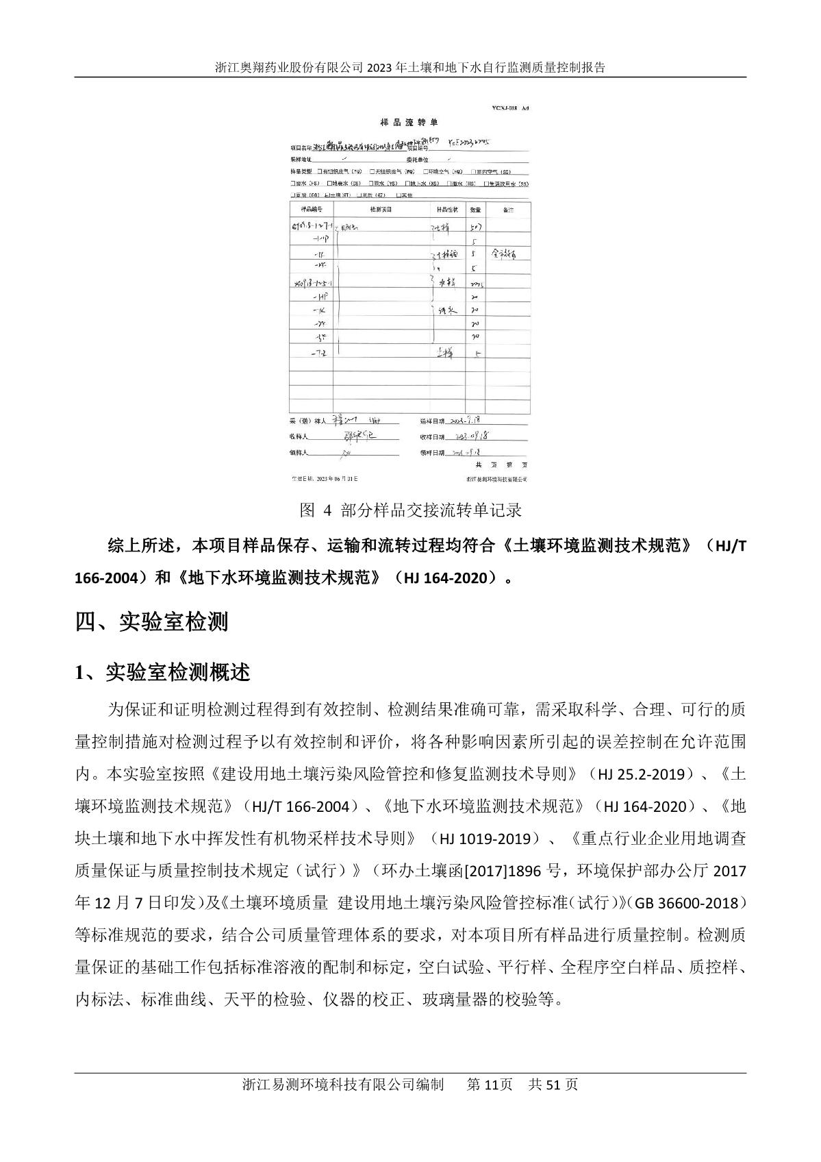 浙江奥翔药业股份有限公司土壤和地下水自行监测报告2023