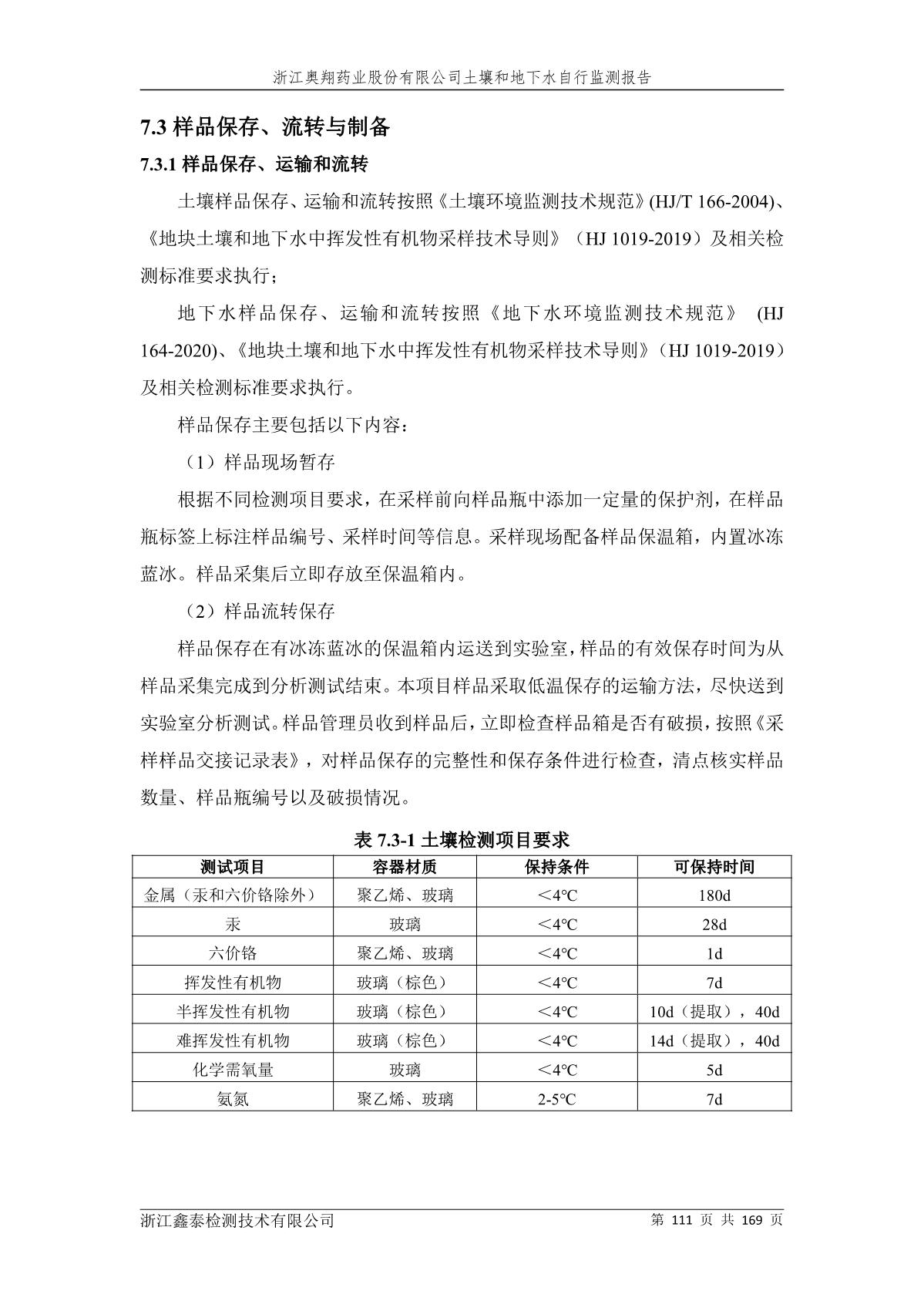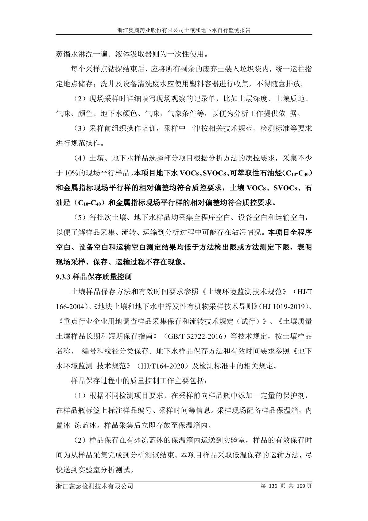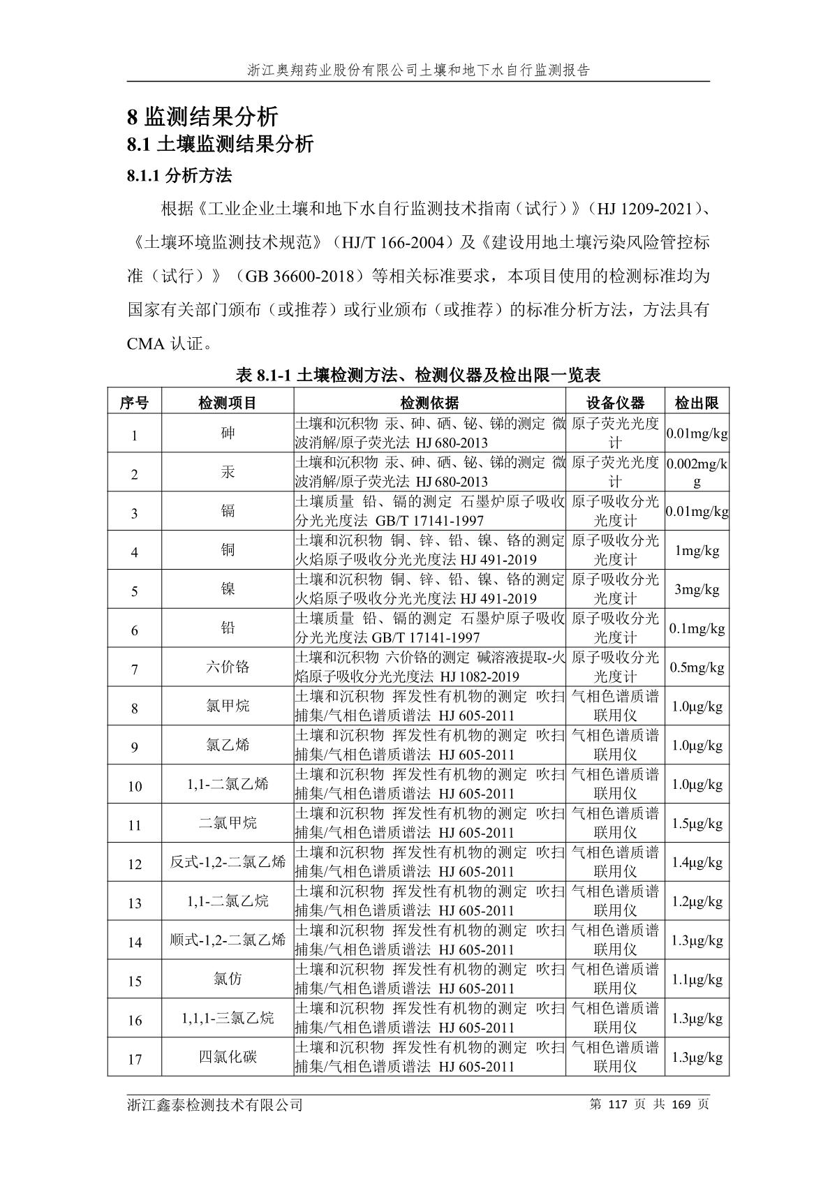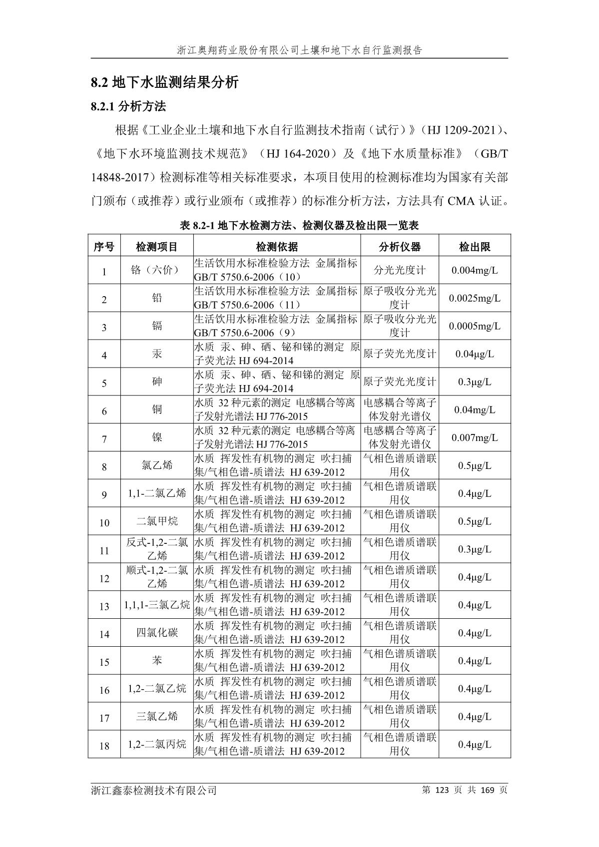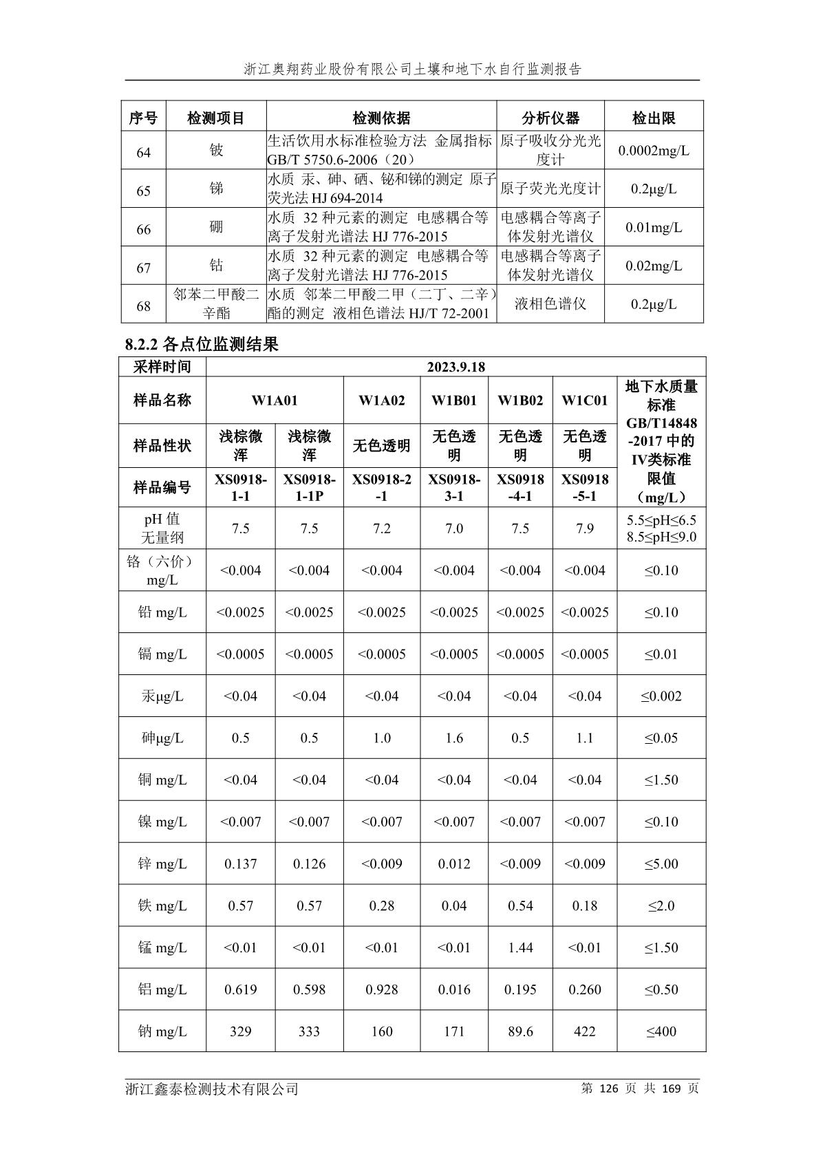 浙江奥翔药业股份有限公司土壤和地下水自行监测报告2023