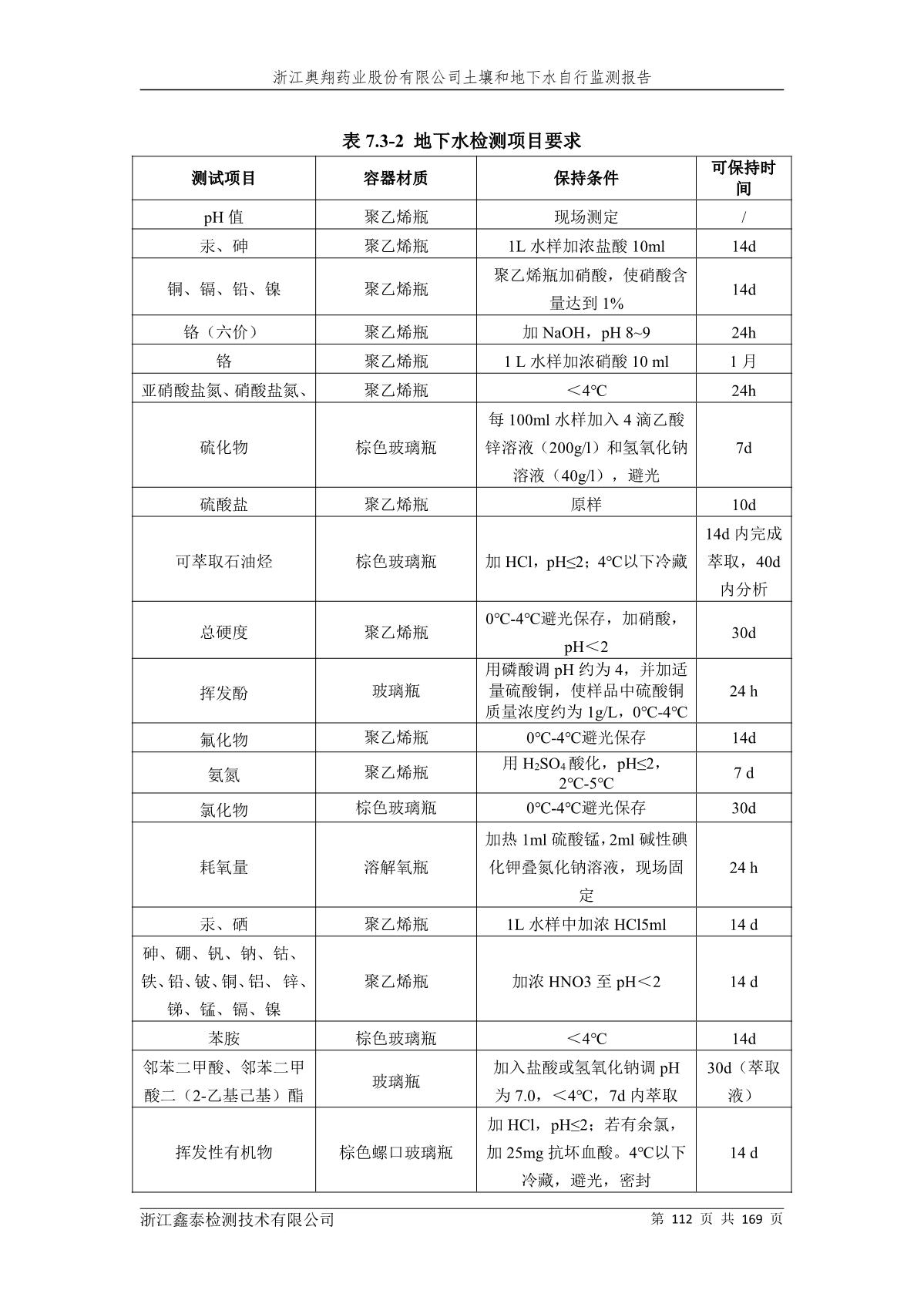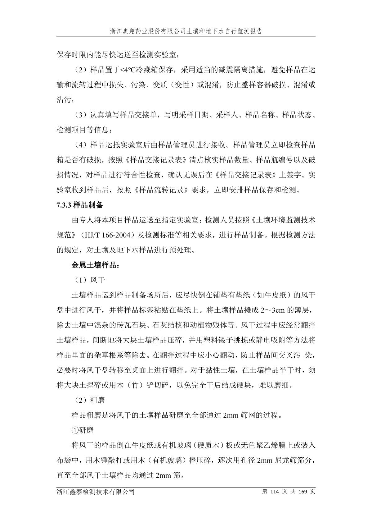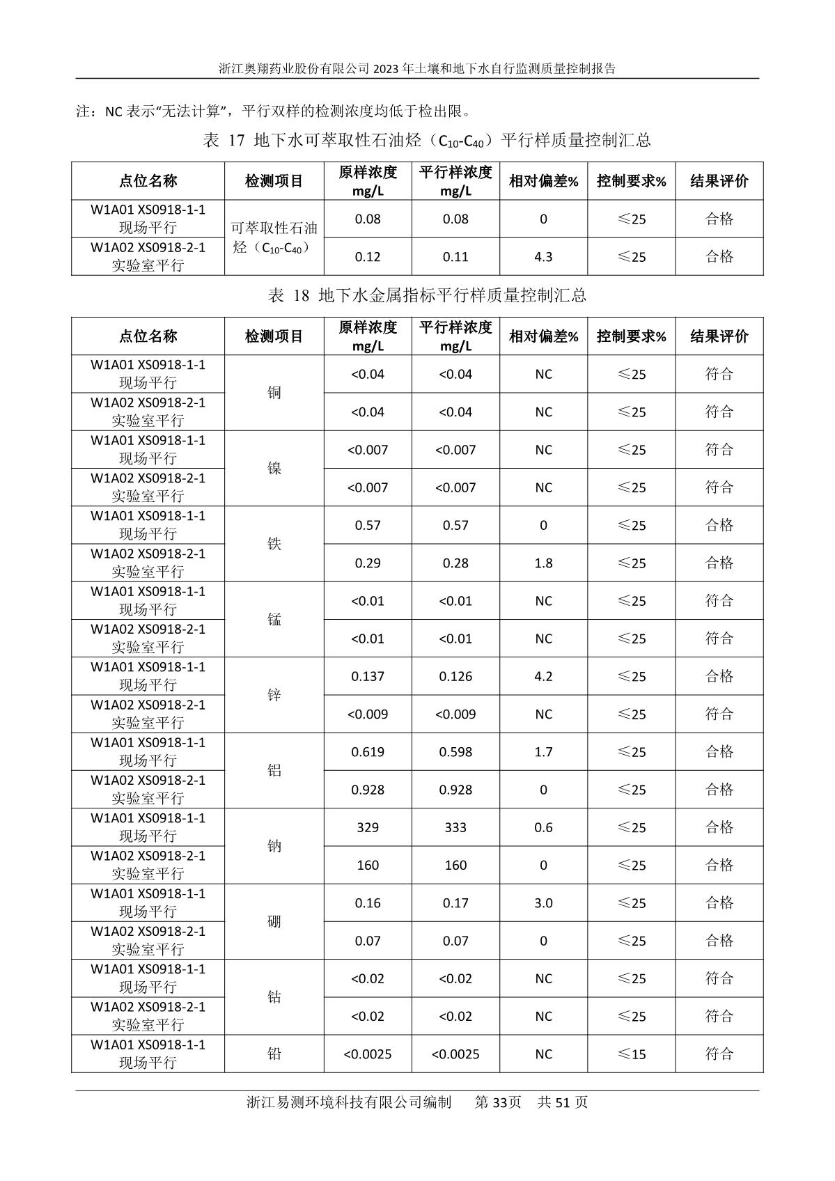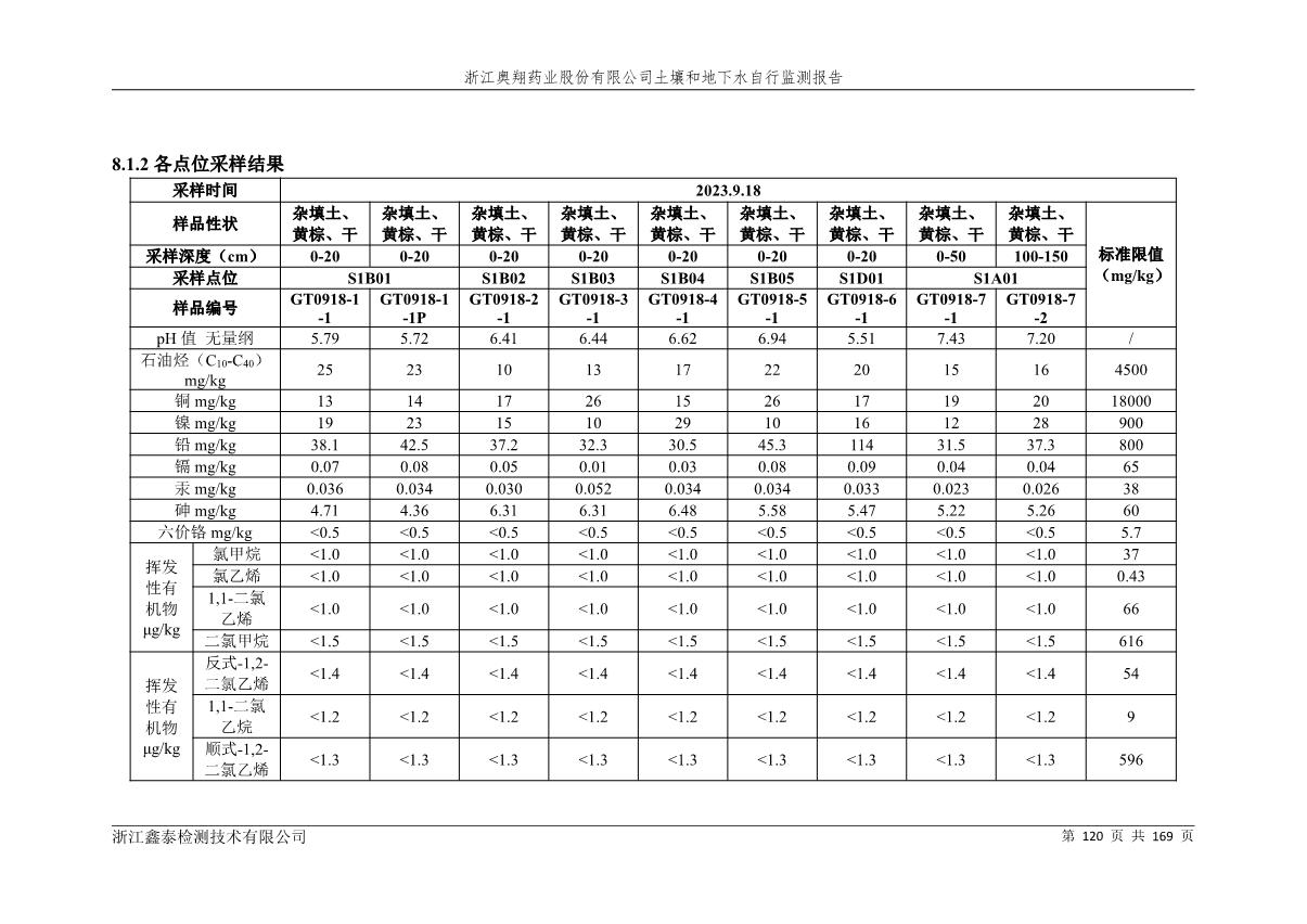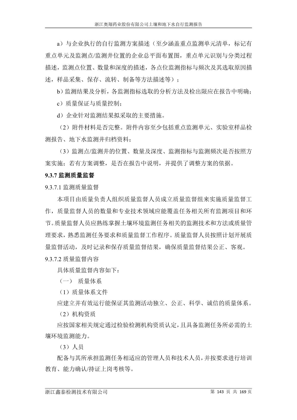 浙江奥翔药业股份有限公司土壤和地下水自行监测报告2023